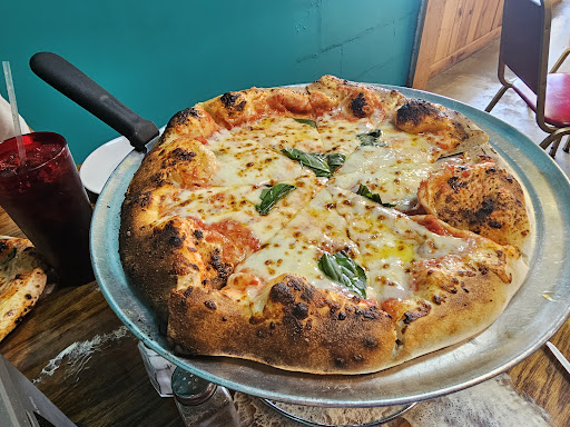 I ordered a Margherita pizza from here. They only have one size but I estimated about a 14 inch. Now a Margherita is a very specific kind of classic Italian pizza that uses fresh tomatoes, fresh mozzarella, and fresh basil and oil. Because it uses fresh ingredients like this, it often has an uneven and "messy" appearance, like an old world pizza.
