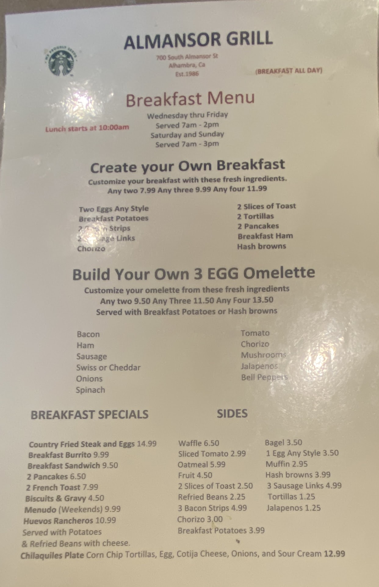 Ā Ā Ā Read morePoor experience. Steak from steak and eggs plate (which we ordered) was not a steak, but a breaded minced meat that they said was chicken, but you canāt really tell. Staff was really unhappy when we asked to change the plate, taking the plate away and not letting us know if they would be able to bring something else until several minutes later. We had our kids with us and the manager was really unfriend with them, after our complain about the steak. Donāt eat there if you like good food...