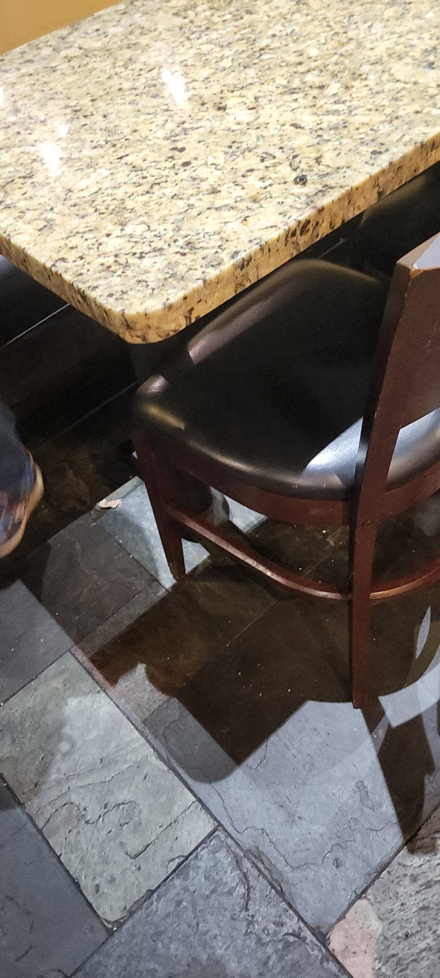 The table they presentsp is too, was clean. Cleaned just before we got there, there seats were still wet, for soaking wet, had to wait till the seats dried out. One little thing they could've done, that would've made this whose experience less disappointing, was to inform us of the waiting time. At least we would've expected the wait, but now we had to wait and wonder when will our starter arrive. There were few other couples waiting for their food too.