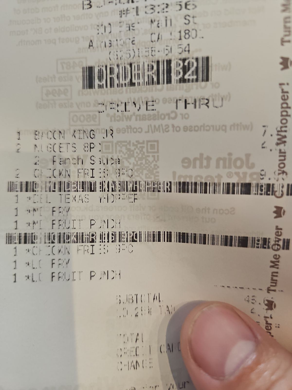 Worst experience Iāve ever had a fast food restaurant. After evacuating my families from Pasadena from the Eaton fires and countless of our friends, losing their home I rushed 20 to make it here before they closed to bring back something Comfortable that would bring a little levity to a horrible situation. Made it with 15 to spare. The location does not close until 12 and I arrived at 11:45 only to find the drive through being blocked by a semi truck. I knocked on every door and window. I could find even being seen by the workers, but ignored only until I went to the drive-through window and banged as loud as I could did one worker who made eye contact with me finally come, speak with me only to let me know that The meat away early So that they could be done quicker. This young man had glasses and dark hair. I do not know his name. This was the most disrespected Iāve ever felt at a fast food restaurant, and I am extremely courteous at every restaurant Iāve ever visited the fact that you would deny someone who was Pushed from their home because you wanted to go home just a few minutes early is disgusting and you And the Burger King corporation should be ashamed...