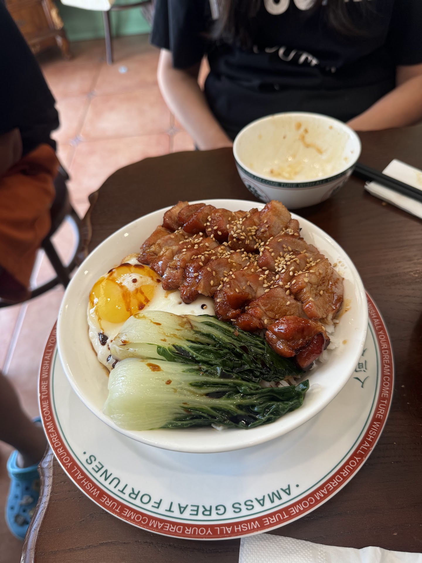 I didn’t notice the QR codes placed on each table but fortunately had a nice English-speaking patron help me order. To streamline, I asked her to order the best sellers. The restaurant was completely out of cha siu so here’s what I ended up with:
