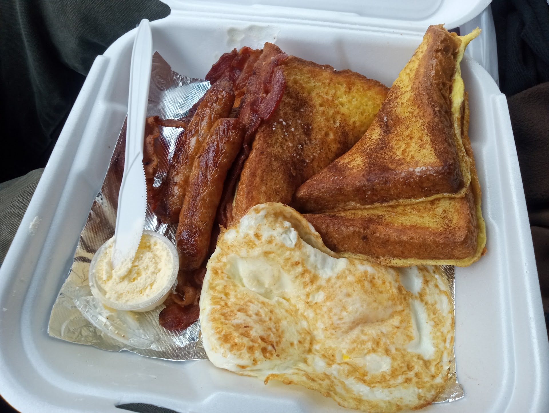 The food is standard burger/ Mexican fare. The price for each item in 2025 is under $10 with certain exceptions in regards to meals and dinner plates. There is a small parking lot that is associated with Ernie's burgers and is free. The food is good for the price but if you expect good food I would recommend other locations.