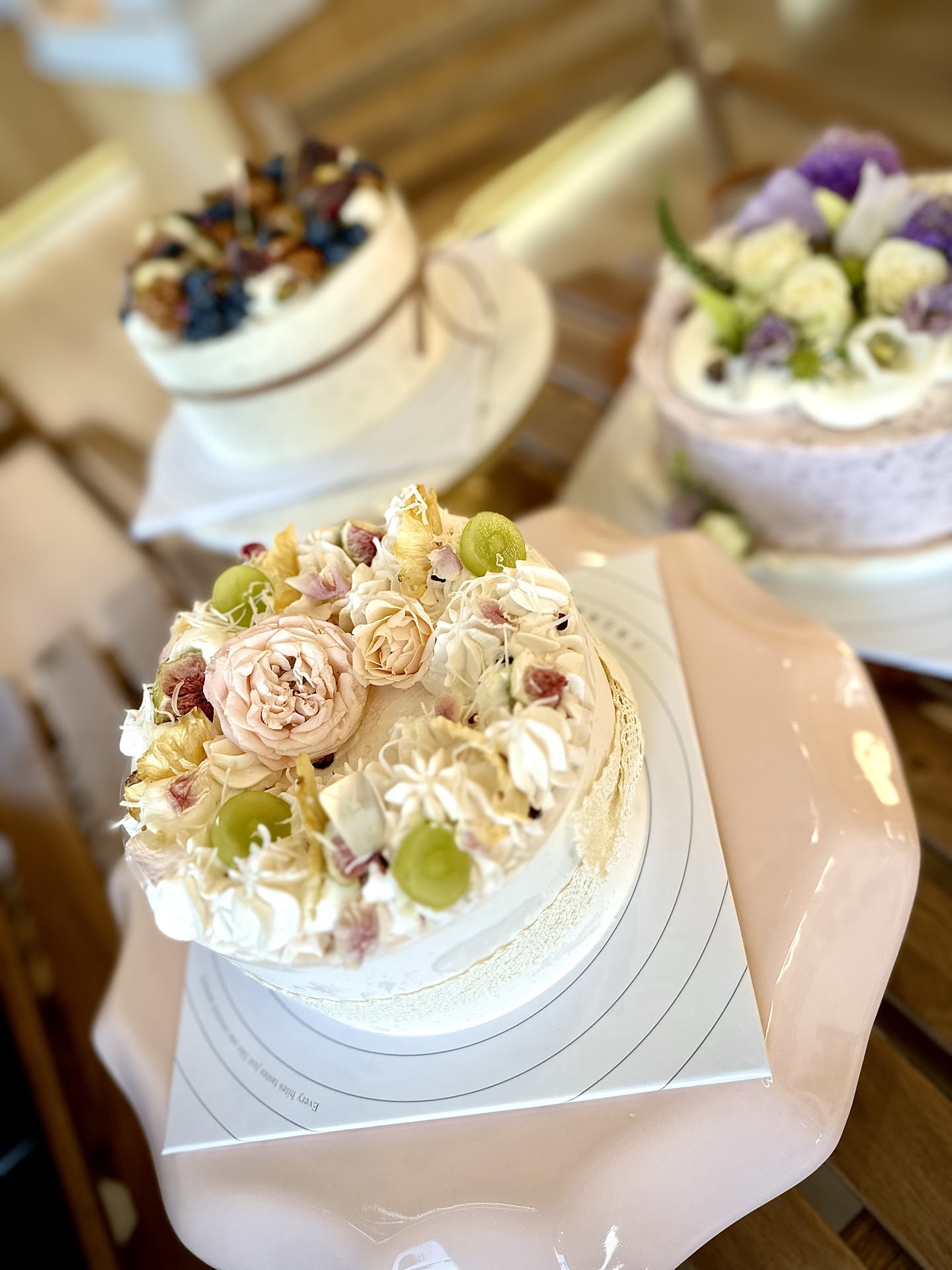 I asked about the prices of the cake. The friendly associate did not know for sure, so she turned towards the other person. Then the other person, without looking up and still scrolling her phone, just called out $98-209 in Chinese.