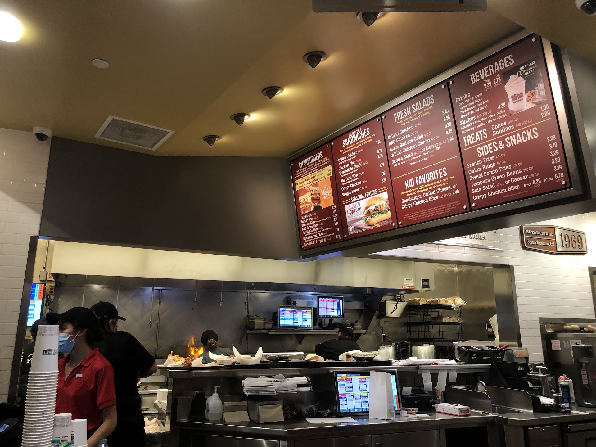 Read moreI like the food. Very flavorful hamburgers and fries. The employees are mostly friendly. The dining room is usually filthy. I normally come here on a weekday, during the 11:00 a.m. hour. There's often pieces of food and/or drink on the tables and seats. There's usually food on the floor, under the tables. The last time I was here, the woman who entered the store in front of me had a large dog with her. It was not a service dog. She sat at that booth seat across from the counter, where people wait for their to-go orders, with the dog laying there on the floor. Not only was the situation unsanitary, but I was sort of concerned about the dog biting me. Maybe it was just trying to be friendly, but it sort of lunged towards me when I walked past it. Then I go to sit at a booth, and a couple sitting near me have just sat down with their dog, who is in a stroller. Anyway, one of them is feeding the dog and the dog was sneezing. Pretty gross. I don't want a side of fleas with my hamburger and fries. And I look down and there's all this food on the floor, under my table. When I was here several months ago, a large white dog was laying on the floor by a booth where it's owners were eating. It was licking the floor. Just not a clean environment. If I'm going to pay $16.00 for a hamburger and fries, then I should be able to eat in a clean dining room. This place is owned by a large multinational corporation. They can afford to hire extra people whose sole job is to keep the dining room and drink area and bathrooms clean. Keeping this place clean is a full-time job. It's hard to eat this food without crumbs and pieces dropping on the table and floor. Show some respect for your customers, and hire people to keep the place clean. Don't...