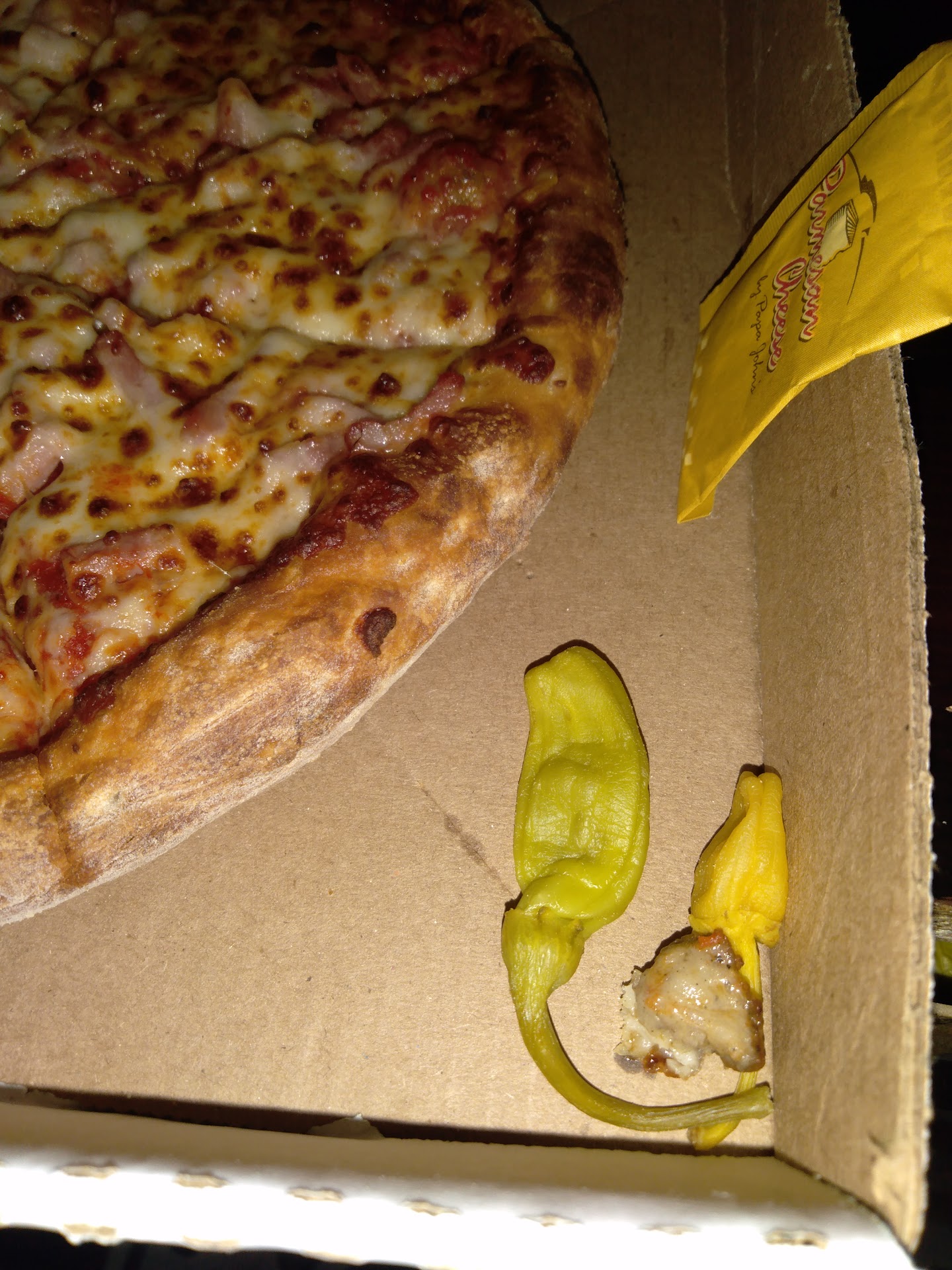 The pizza was disgusting. It was hot, however. It all went in the trash. I was worried we would get sick.