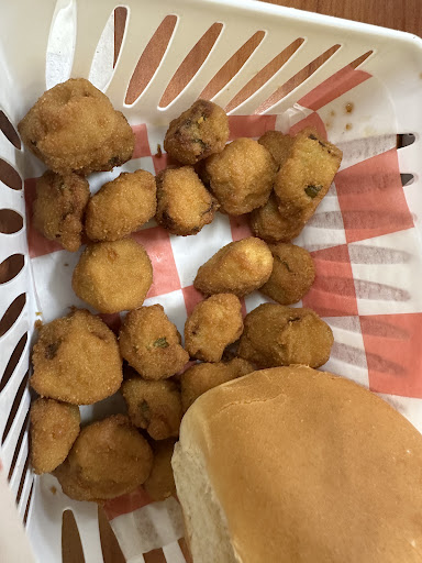 Read morePassed through town yesterday and stopped by. I was impressed with the place. It was nice and very clean. The young man at the counter was very nice and really good at multi tasking. Then there was the food. We started with the fried mushrooms-really good! Also had shrimp, a burger and a grilled chicken sandwich-all awesome! Also loved the crinkle fries!!! Lastly the earthquake cake-scrumptious! Just had a great experience in the middle of along trip. And kudos to the young man at the counter (Damien). He was excellent and a hard worker managing the dining area all by himself....