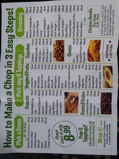 The first time I looked up Chop Stop, I wasn't psyched. I just wanted a quick salad and there were too many choices. I didn't want to make choices and calculate costs for premium and super premium toppings. But tonight I gave it another try.