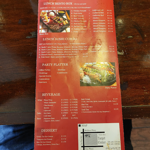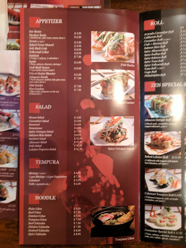 The website does not work. The information on Yelp and Google is confused and misleading. There are too many places with this name and the web can't keep them straight with the help of people posting the wrong locations menu to a different place. All pretty confusing. Once you go over the wrong menu and get a family sized order together and call it in, you realize the menu was wrong and tou have to do it all over again.... So that was just leading into the front door.... I got in and was handed a sushi bar menu and a pencil and had to go thru the process of finding everything one more time on this new sheet. Got it done and the older sushi cheif starts correcting me on where you check for cut and hand roll. Not an issue but he did it with a pretty good attitude as if I just failed his little test. I remember a review that gave them a low rating because of a rude sushi cheif and I think I meet him! He wasn't that bad but not really a people person. The food order was fast in and out and I was on my way. The food was really good although the special sauce for the Night Roll was yucky. I hated the experience of trying to order online and deal with tech impaired ordering. But the food was good. I posted 3 pages of the menu as clear as I could with the room lighting from a phone. Menu pg1-3. These files go with the location and Zen Sushi name. If in doubt call or better yet, just...