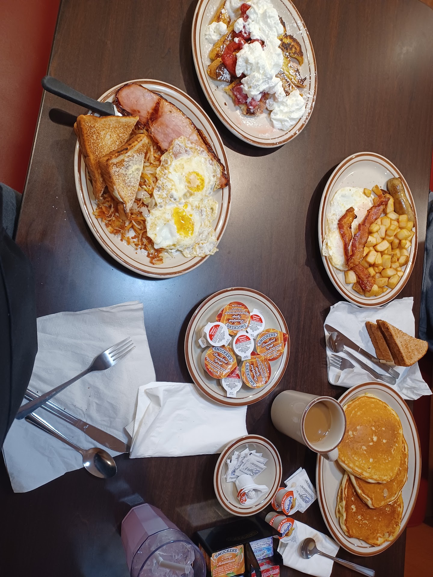 Read moreI recommend you trying the place out yourself. That being said, me and my wife don't plan to go back. Food had no taste to them (flavor or seasons), nothing was cooked long enough (French toast was undercooked in the middle, potatoes was still more solid, peppers n onions in the omelet just looked and feel heated up for few seconds) and that was my meal. My wife had concerns with her open face meat loaf. To add more, on the drive home, wife started feeling sick and wanted to puke. She made it to the bathroom once we finally got home. Stomach felt bad up til this morning. Again, try the place out yourself, maybe it was just a bad day for us to go. But yea, we never going back again. The staff were nice though. That's probably the only good thing I got. Oh, and water tasted straight like from the sink. Which many places do that I'm sure... I recommend a different process for that if the water gonna taste like...