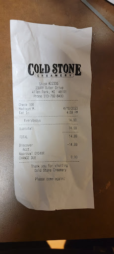 Read moreI have been going to coldstones for well over 15 years and sad to say I do not give them anymore recommendations. In April I ordered 5 ice creams from them online and only 3 was delivered. One was still wrong. I contacted the store and they wanted to give me a credit even for the ones that I did not receive. I declined it and it was told to contact doordash. Once I contacted your dash they told me that it was the store that would refund it and they contacted the store and was telling and I was told that they were going to give me a full refund and never got it. I called doordash back a few days later probably about a week later and was told that they will call them again contact them couldn't get nobody at the store and contacted the complaint line and was told to that a form was completed and I received the email stating that I will receive a email confirmation of the complaint for the refund. I received the email but still hadn't received a refund. We are now into May and I have contacted them myself three times could not get a supervisor and still have not had anyone return a call to me. I have reported them to the BBB and they still haven't heard anything. This was $40 worth of ice cream for my kids and they are refusing or ignoring me and not wanting to get me my refund. I would never utilize them again. And I just...