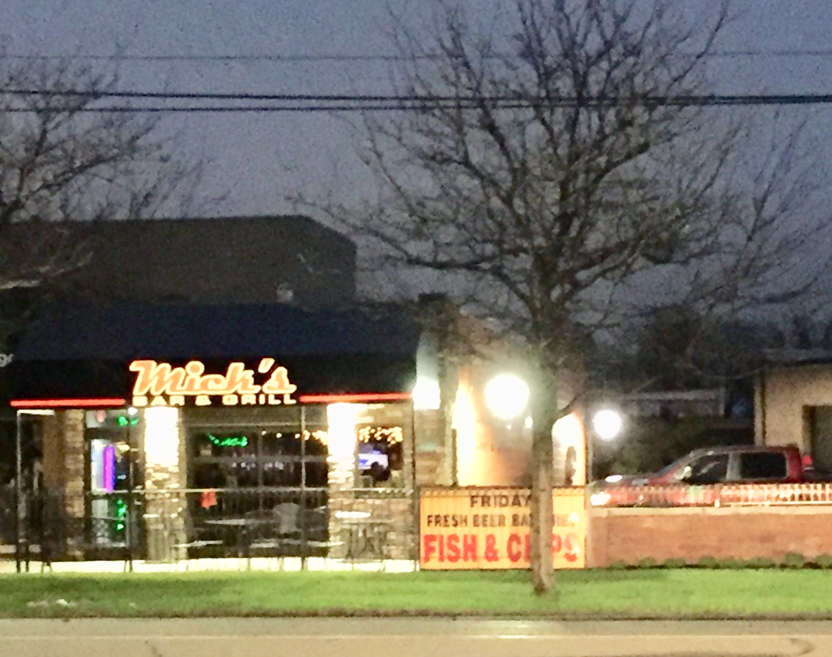 Stopped by Mick's for a beer and a bite to eat late on a Wednesday. There were about a dozen people there, which seemed like a good crowd for a weekday. They appeared to have recently added some upgrades to the decor. Including a garage door that opened up onto a nice patio. But other portions of the bar, like the bathroom, seemed to remain untouched. The sink had to have been from the 60's or even 50's. We ordered BLT's and it took 30 MINUTES for them to be brought out to us. The BLT was delicious with grilled bread and the hand cut fries were almost perfect. There were a couple bigger chips that were not fully cooked, but they were well seasoned. I did not have draft beer as there was a glass Pyrex of beer swill setting under a row of taps and you could see the beer lines dangling from the ceiling. A portion of the lines were not even insulated, so I knew what temperature that beer was on a warm 88 degree night with no air...