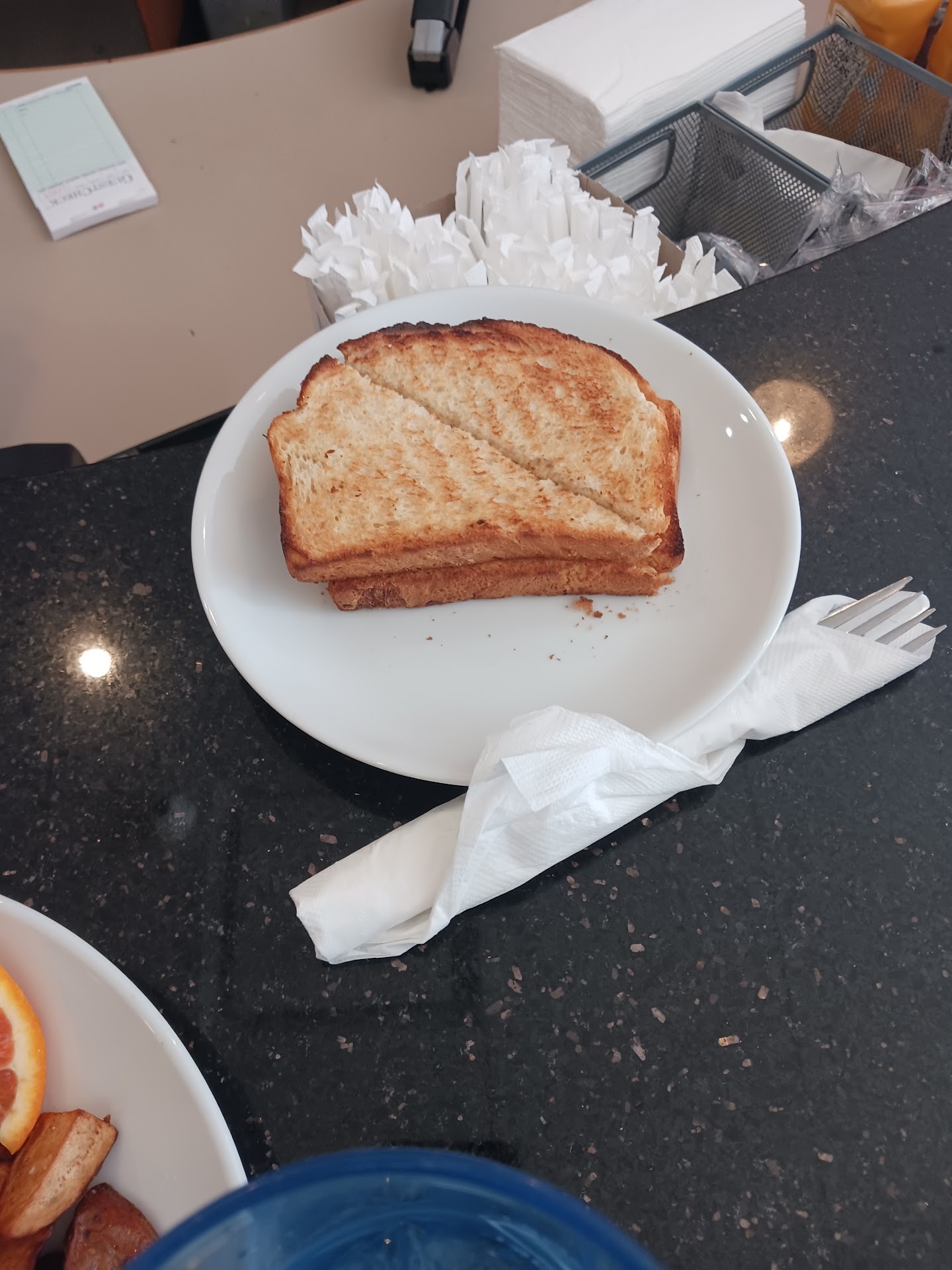 I ordered the 1/2 order of French Toast as I had already had 1st breakfast and this was more about meeting my friend. It was nice, nothing special or extravagant but well made, good flavor and crisp to the fork. My buddy ordered the salmon Benedict and that was the real winner of the morning.
