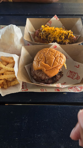Read moreThis place is located in The HUB. It's one of many places to eat there. Signs outside day "Delicious Burgers" but this place only has small sliders sold individually. Anywho, we ordered a regular slider, corn dog and loaded fries. The slider had absolutely no seasoning, it tasted like nothing, shockingly didn't even finish it even though all you need is 3 good bites to finish it. I had high hopes for the corndog as I thought it would be in house made, but the first bite you automatically know it's a basic frozen corndog that's just been fried. The loaded fries were very good, the only thing i would suggest, but again how hard is it to not mess up loaded fries.