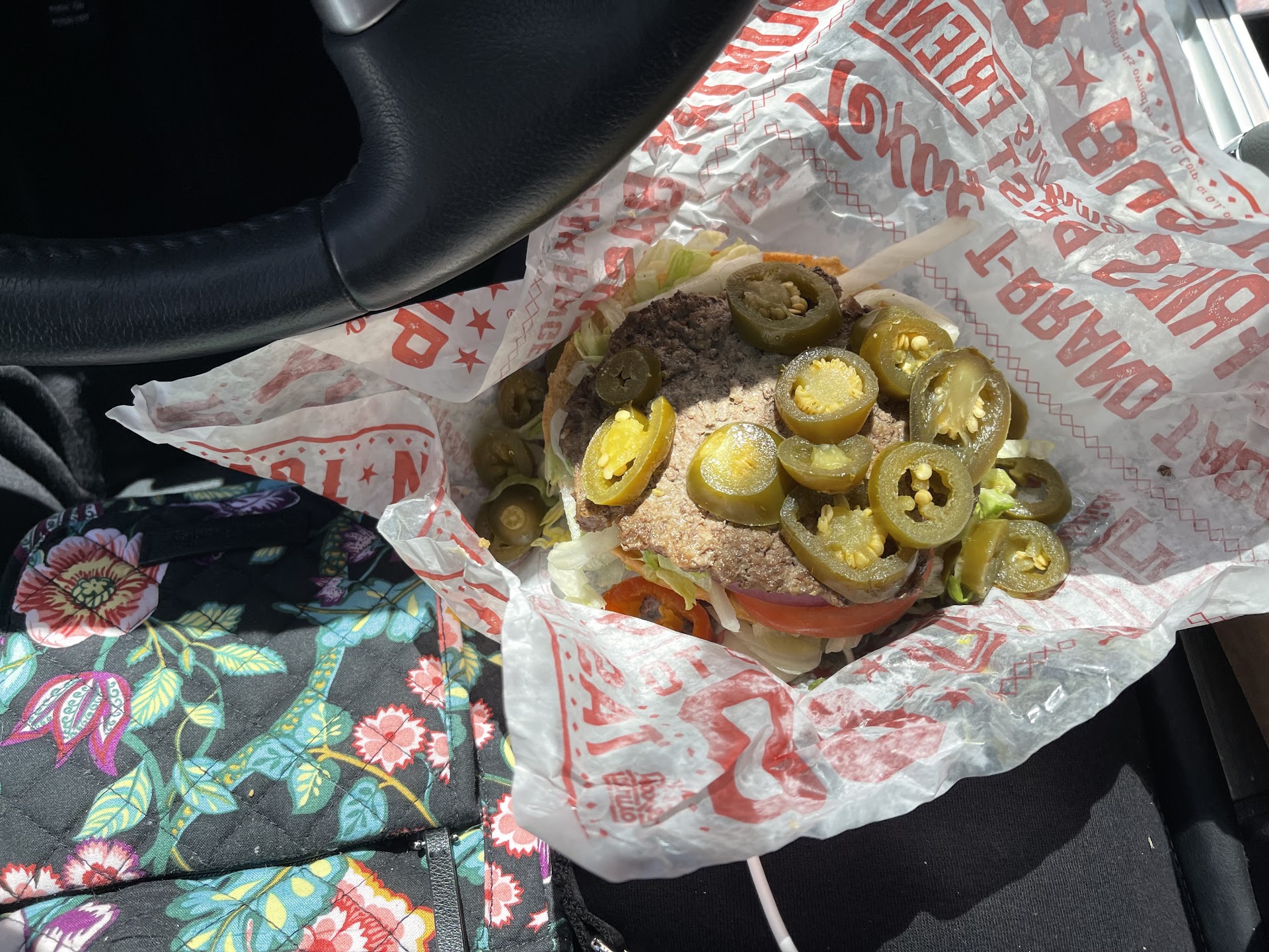 She went and had another burger made and in the background tells them AND MAKE SURE YOU ADD JALEPENOS.