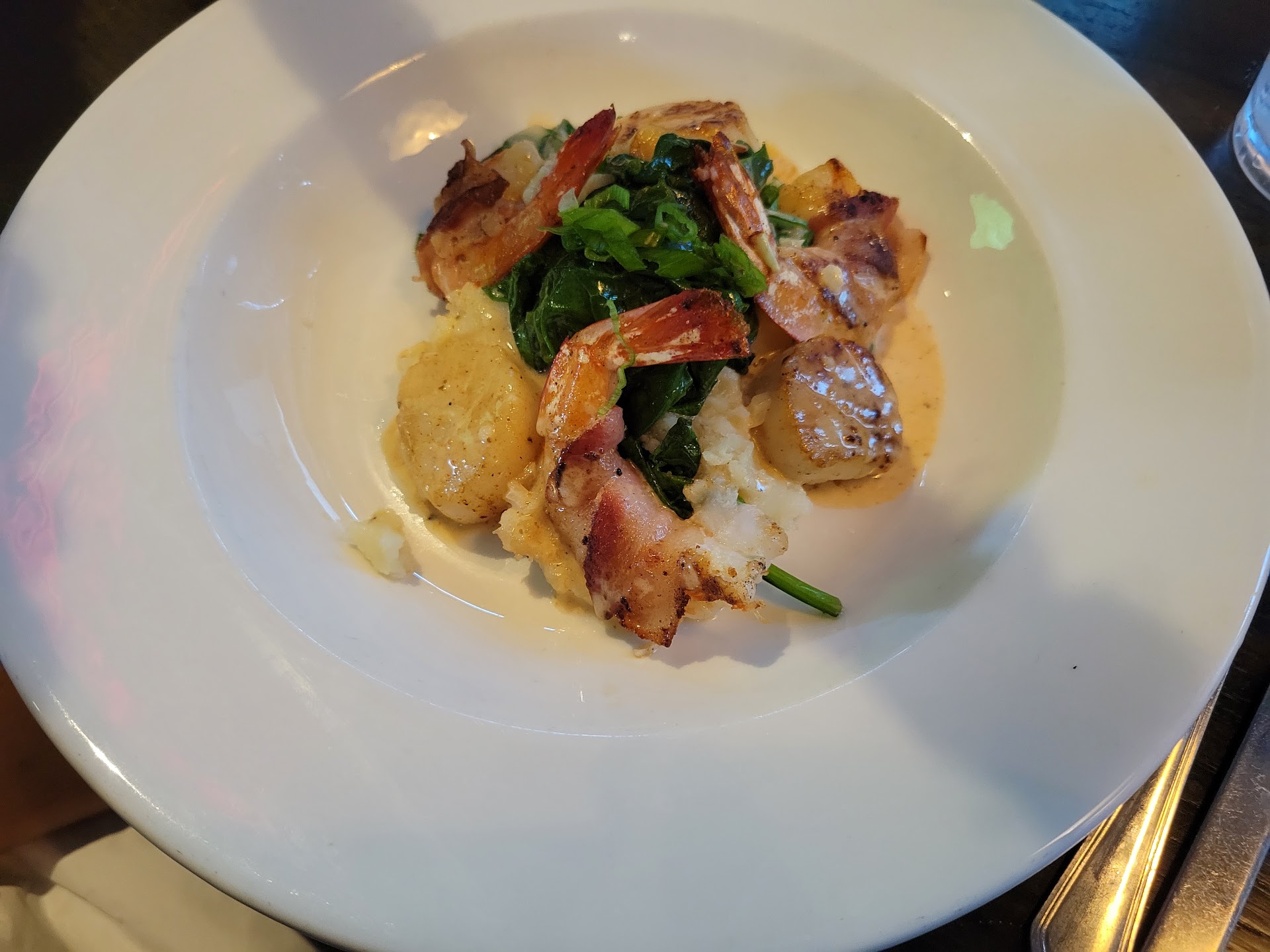 Bar top was dirty and wet, bartender finally came over and wiped it up after 5 mins. We ordered drinks and finally got 1 menu to share. Bloody Mary was pretty good. The guy working the front asked if I would move over to allow a couple to sit at the bar while they wait for their both. Didn’t want to be on top of anyone especially since the lady I had to move elbow to elbow to was hacking all over the bar. The reason I didn’t sit next to her in the first place. But I complied. The couple I accommodated for sat a 2 mins at the bar then moved to their booth, so I didn’t see the point.