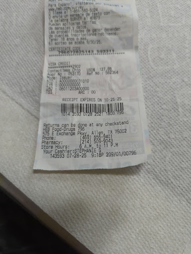 I am leaving in Allen, Texas almost 20 years I used always Kroger store Today I decide to go to HEB store I was very disappointed about people who working there! On the checkout I had line behind me about 10 or 12 people, and I am 65 years old start to loading bags of all product that I bought! The cashier was looking at me but do not try to help me,- another black girl who's supposed to loading bags- she was staying far away from the cashier and spoke on the phone! Again, I've got lane behind me about 12 people I would send them work in Kroger to study how to be kindness like...
