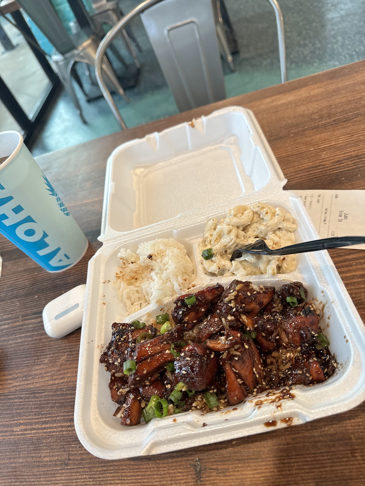 So my wife and I opt to split a huge lunch plate. The rice was very good and sticky, went well with the rest of the food. The pineapple was so juicy and good!! My daughter opt to be picky that day so I got to enjoy that and had to give up some of my rice but that was fine with me lol. For the meats we got the Molokai Chicken and Kilauea Chicken. They were DELICIOUS!! I enjoyed how spicy it was and it paired perfectly with the BBQ sauce. I did get the Spam Musubi, as it looked interesting, it was ok, but will not be getting again in the future.