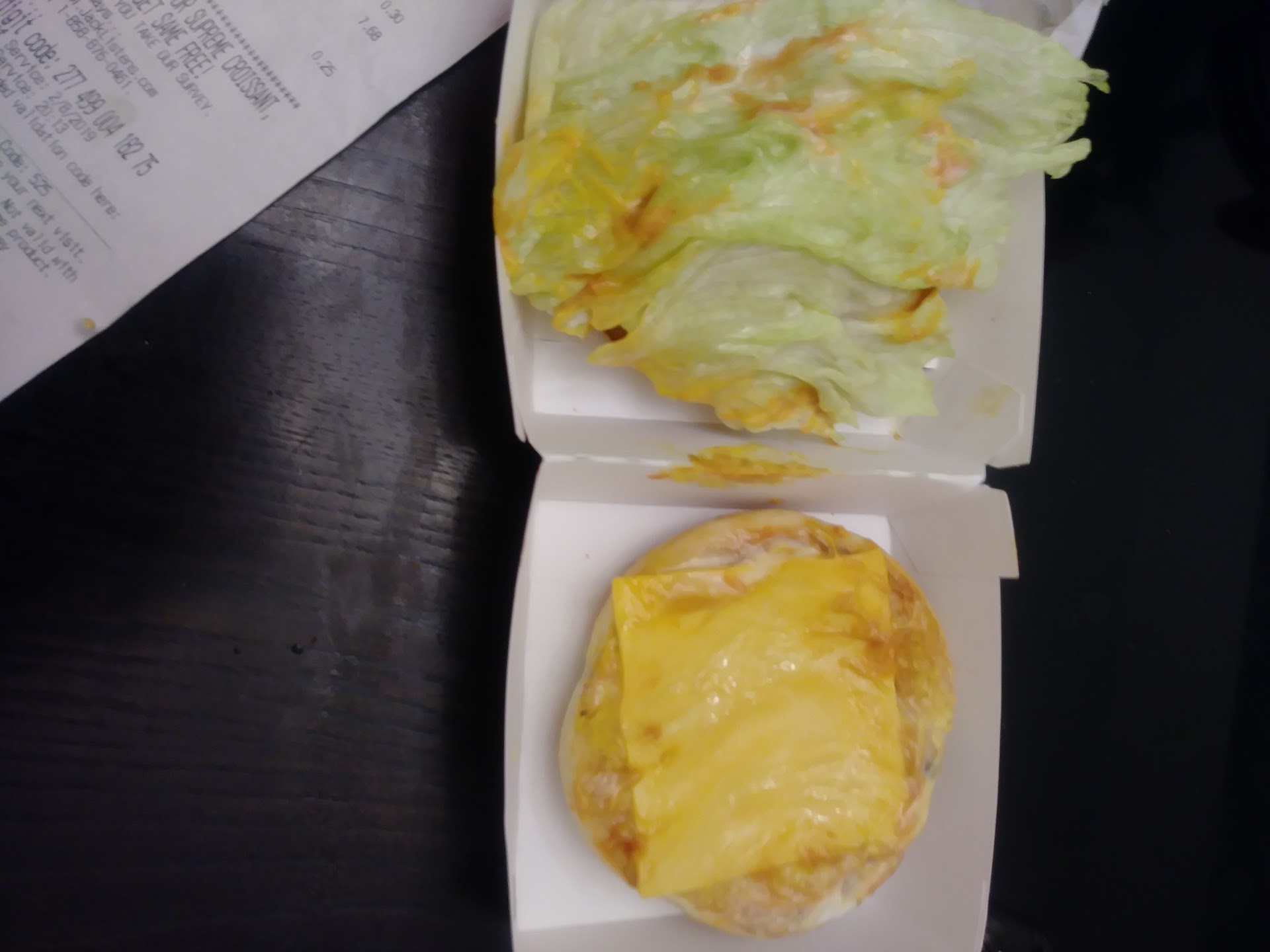 Read moreI door dashed an order tonight.. I called the location.. atleast 5 times.. NO ANSWER. You don’t have an option to ask for condiments.. I just wanted some taco sauce.. which was already frustrating… then I cannot get ahold of anyone in the store. Really? I tried to let it go and just crossed my fingers and hoped that sauce would be given voluntarily.. the food smelled and looked great.. I ordered the a couple spicy jacks chicken.. I don’t know if this chicken was extremely old or frozen without being properly stored..(it definitely smelled freezer burned) they were absolutely disgusting. The breakfast croissant was poorly made (there was hardly any ingredients on it) and completely smashed on top of it.. the tacos were stale and bland.. with hardly any taco sauce to cover it up after I had to go out of my way to receive any in the first place because apparently picking the phone up is too tasking of a job… $60+ worth of food I just gave to my trash. I won’t even give my dogs this as I am afraid it might make them sick. I am so disappointed..I will not be ordering from here ever again. It’s no wonder y’all’s rating...