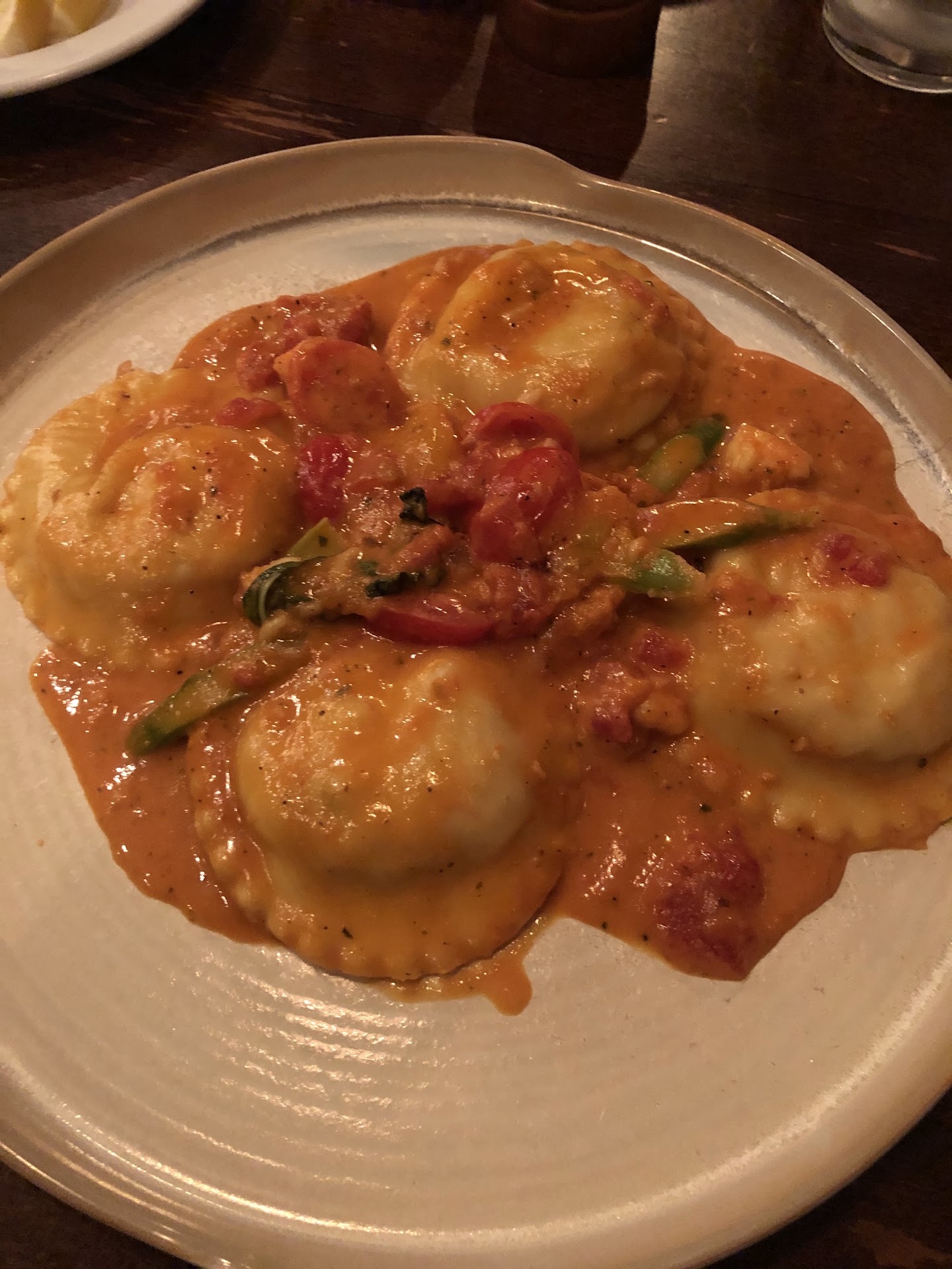 The waitress (Haley) came with water and we told her we needed a few more minutes. She came back a few minutes later and we asked her about some of the meals and she didn’t t seem to know what’s in the meals. Anywho, I ordered the Aragosta - Lobster stuffed ravioli, chopped shrimp, cherry tomatoes, asparagus, tomatoe-cream sauce. My family ordered the Nonno’s, Alla Crema, and Alla Moda. The food came out pretty quick. Another waitress brought us our food and our waitress came back after we started eating our food before she came and asked if we wanted parmesan cheese on our meals. The Aragosta I had only had 4 raviolis. This is the first time I ever finished my meal since it was a small portion. But besides that, the flavor was good. The rest of my family said their meal was good.