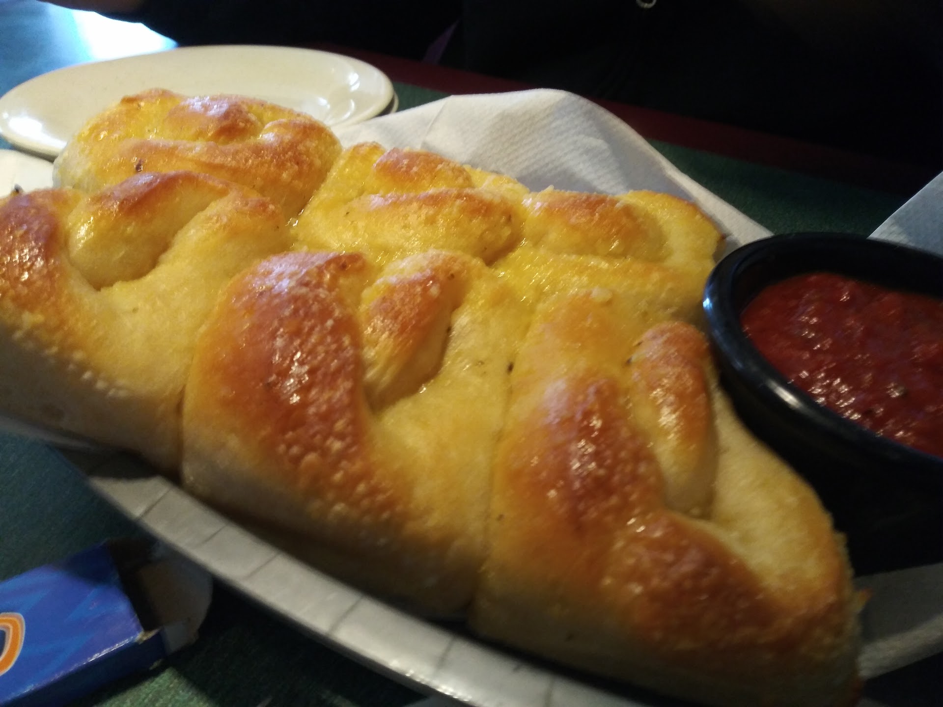 Read moreWe came here on a whim and we had never been here before but I had remembered that this place was next to a Walmart that I went in so I saved it. The menu Isn't all right price for the portions. However, I ordered a stromboli and I started eating it and noticed that it was sort of. Gooey. I opened up the inside and half of it was still raw. I sort of saw that coming because it felt cold on the inside yet It was burnt on the outside. They returned the item and gave me a plate of spaghetti instead. My boyfriend liked his pizza, however and ate most of it. They were nice enough to have crayons and paper for my son. The staff was friendly and attentive. The Ambiance was nice and the lighting was really good. It felt pretty homie inside. I think if the Stromboli wasn't Raw I would have liked it. They didn't charge me for it though So that's good. I did like the breadstick however, they had a nice garlicky taste. We may come back depending on if we're feeling like...