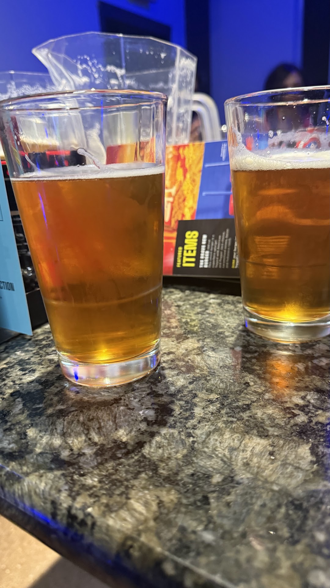 we got two bays on the bottom floor all the way at the end. to some people this might be a negative, but i enjoyed it because it made it more private for me and my party. we were instantly greeted by our waitress who was very nice and catered to our every need. once everyone showed up, we ordered tons of food and beer and started crushing golf balls, or at least trying to.