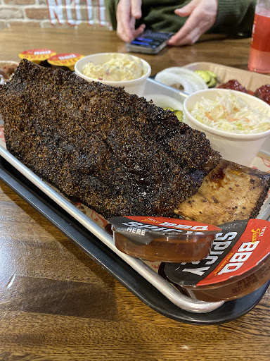 Read moreWe stopped in when we got to HEB really just to check out the menu. When we saw Dino rib we had to have lunch. We ordered the dino rib with cole slaw and potato salad, brisket queso nachos, and 2 Texas torpedo with both sweet and spicy sauce on the side. The first thought that came to my mind when I saw dino rib was the Flintstones when they get the rack of dino bones that makes their car fall over - and this dish was definitely just that. Between 1-1.5 lbs of meat on the rib alone, it could’ve easily fed a family of four. We had to eat it with a knife and fork but the rib bone was bigger than our heads. We will definitely be back. We ordered 2 Texas torpedos, stuffed avocados wrapped in sausage, they were delicious but we only needed one. It was sooo much food, delicious, but a...
