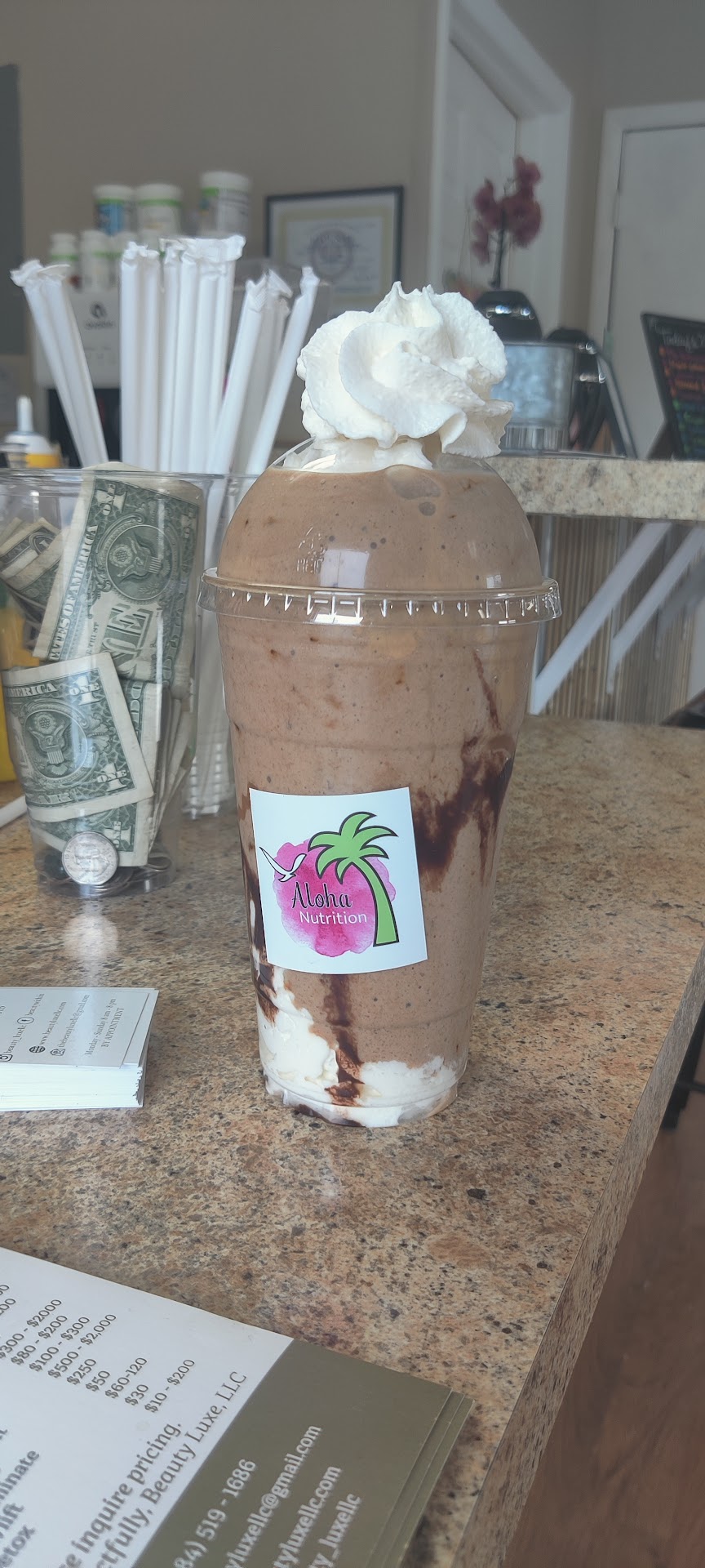 Read moreI discovered this place back in October when my husband was in the hospital. He was in so much pain, he couldn't eat anything for the first couple days he was there. I wanted a healthy smoothie or juice bar for him so he could get some sort of nutrients. A quick Google search and I found Aloha Nutrition. They were open early in the morning, so I was able to get my kids on the bus and head over for a smoothie before going to the hospital. I went with the orange colada and an added scoop of fiber. I brought it to my husband and he loved it! It was the only thing he was willing to eat/drink. Needless-to-say, I brought him one every day for the remainder of his hospital stay. Great flavors, great service,...