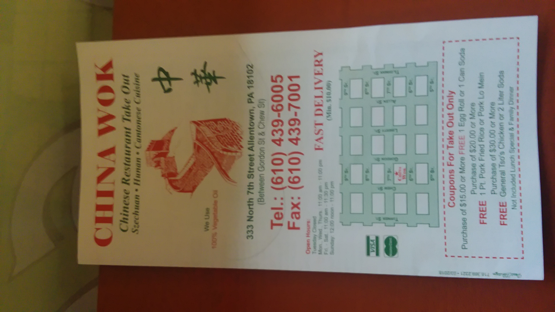 I've been residing for over 42 in the Lehigh Valley and have used quite a few Oriental restaurants ! Through out the years many have deminished . Back in the 80's House of Chen on Hamilton st was the every day hangout for food and drinks. I just started using China Wok on 7th street and I can attest that this restaurant has a very exceptional service when it comes to it's food and it's service. It has a very polite and welcoming young lady in the front ๐ . I recommend this establishment over any other in the Lehigh Valley. I also want to add if you want it in any specific way to your satisfaction this is the place where you will receive your meal that will knock your socks off ๐๐ฑ๐ . They will over dose your taste buds with pleasure coming back for more ๐๐๐๐ . They should be charged with selling the best Asian food in the valley that has addicted many like...