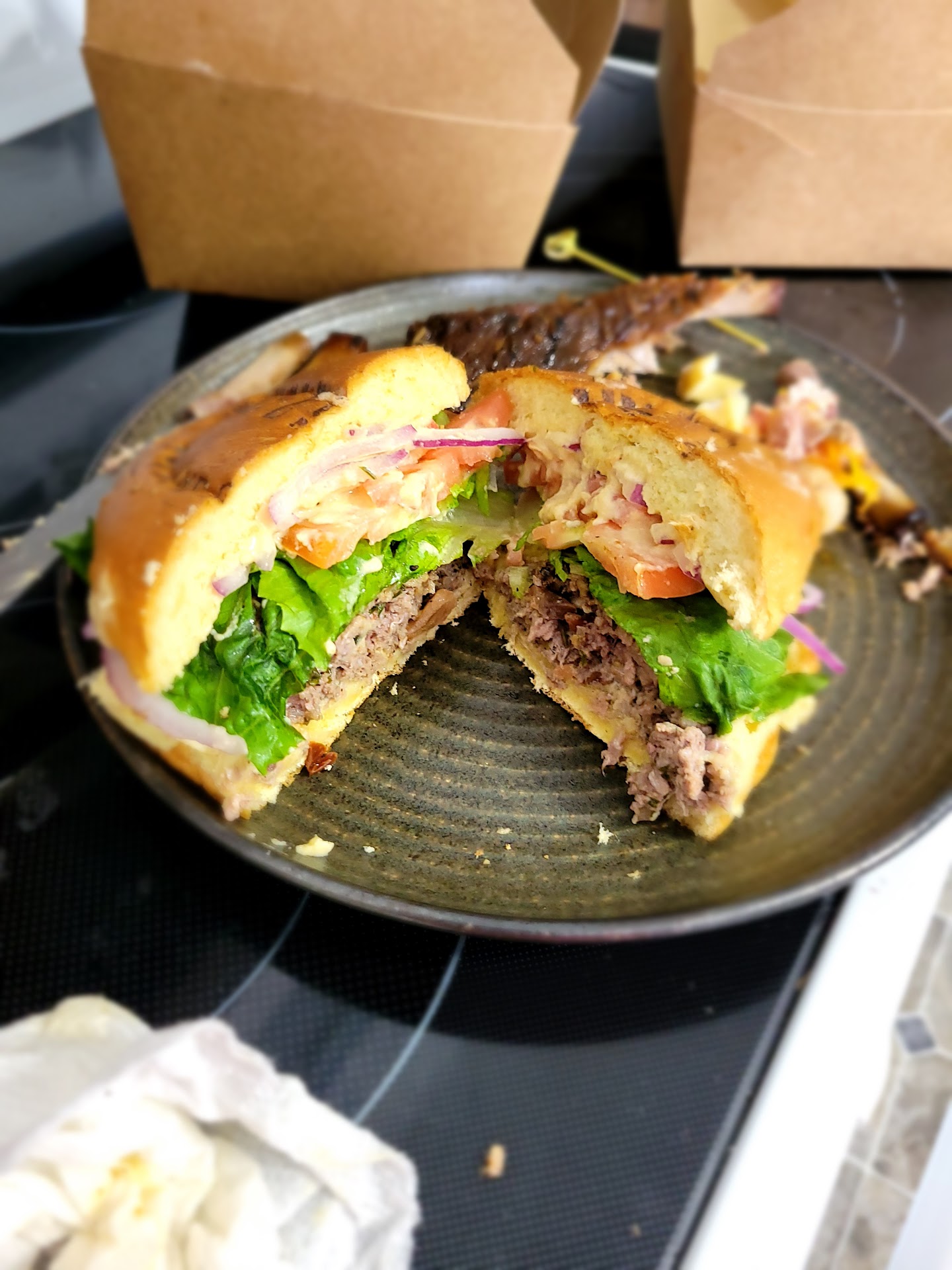 Read moreMust try new restaurant of west end Allentown! Great take out presentation. Tastes the way it looks. Smoked ribs tasted right off a smoker. It was flavorful with bold smoke. I thought I was eating it from a BBQ restaurant. Secondly tried the 3 little pigs. Only reason it look well done because had husband order it. Very juicy considering the wat my husbandordered it. 3 meat combo one meat did not over power another meat. Honestly perfect burger before or after a ball game. Hearty and filling. Lastly, tried the kefta burger. Tasted as it came from a mediterranean mother with an American twist. Definitely a homemade hummus on the burger. All around pleased even with take out. Both burgers were fresh not frozen ground meat. Food was made at a timely mannered didn't wait long even with grand opening. Will dine again!!