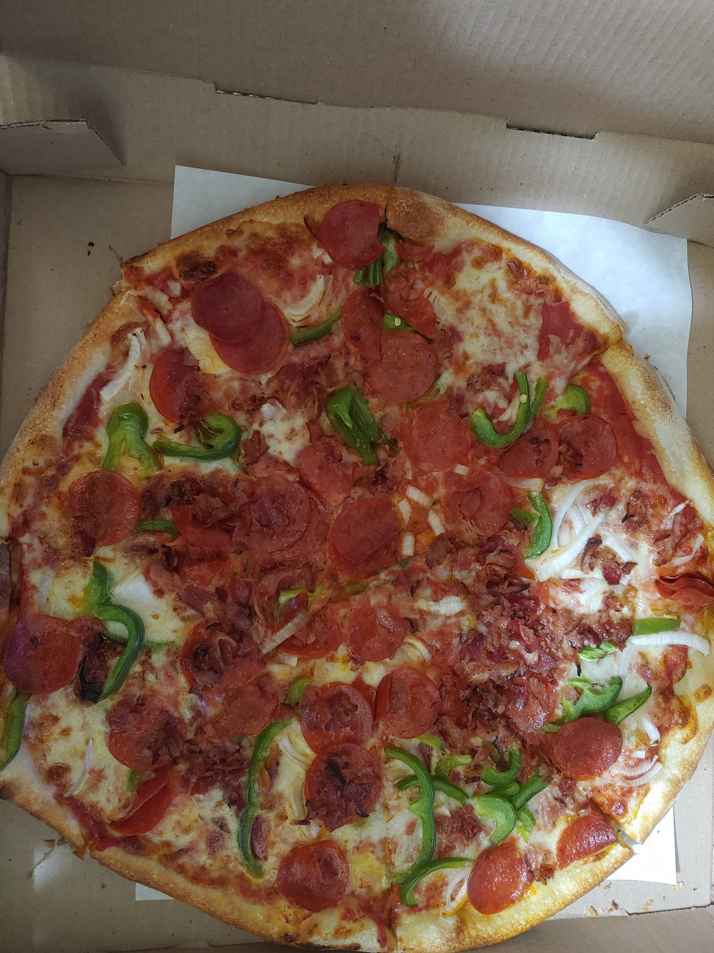Read moreI am glad I ignored most of the bad reviews or okay reviews. This pizza was fantastic. The best my husband and I have had out of a dozen places we've tried between Virginia where we moved from to here. The crust is thin and crispy. The sauce had a good taste, not too light or heavy. The cheese was acceptable (my favorite cheese is from a place called The Don's Pizzeria in VA-nothing like it). The garlic knots were chewy and delicious. Chicken wings just okay but it's a pizza place. We just went to order and there is no delivery on Saturday at least today. We are so bummed my husband wants to drive out and get it. Glad we found a pizza place we like. Hope we can get...