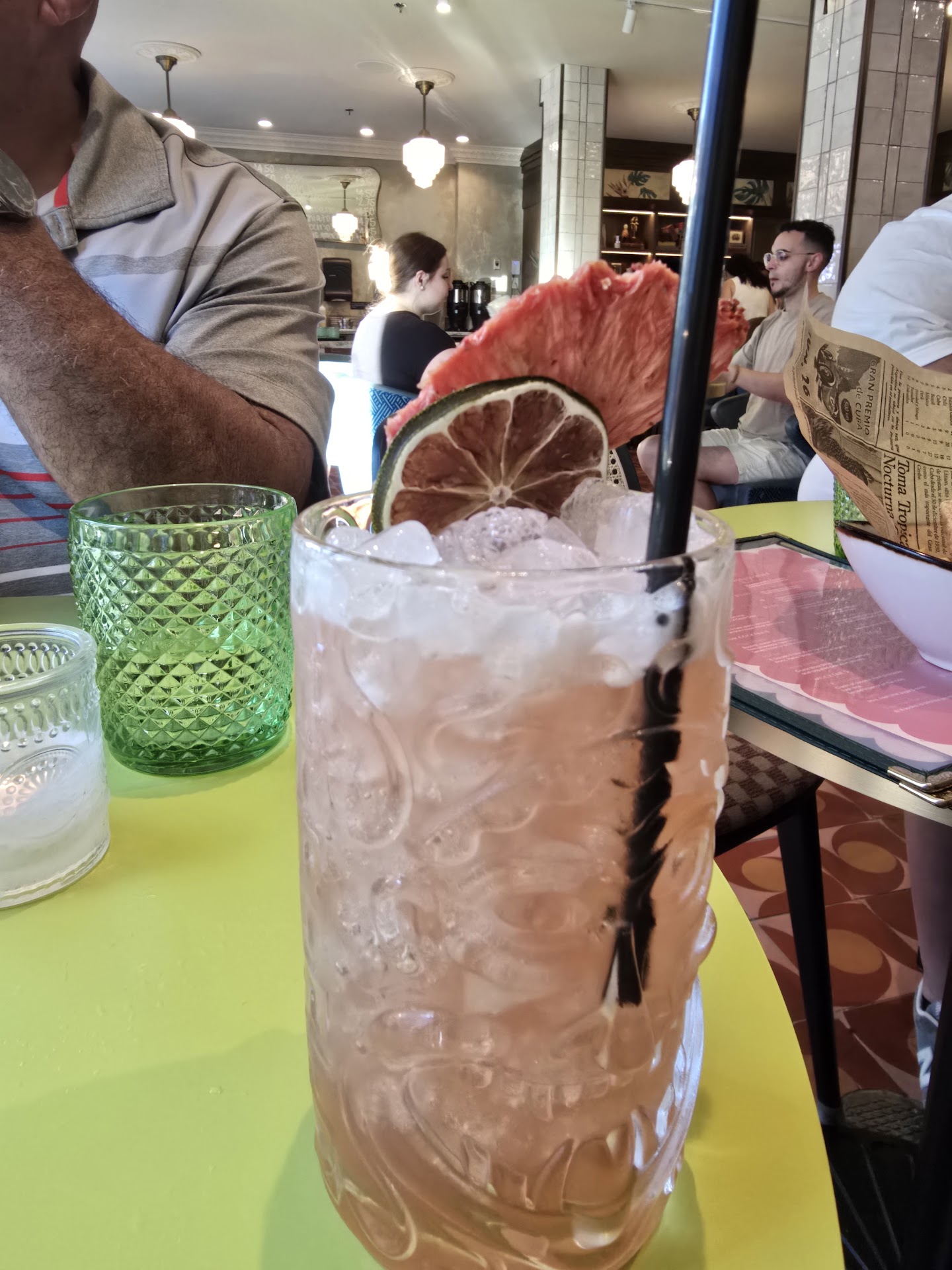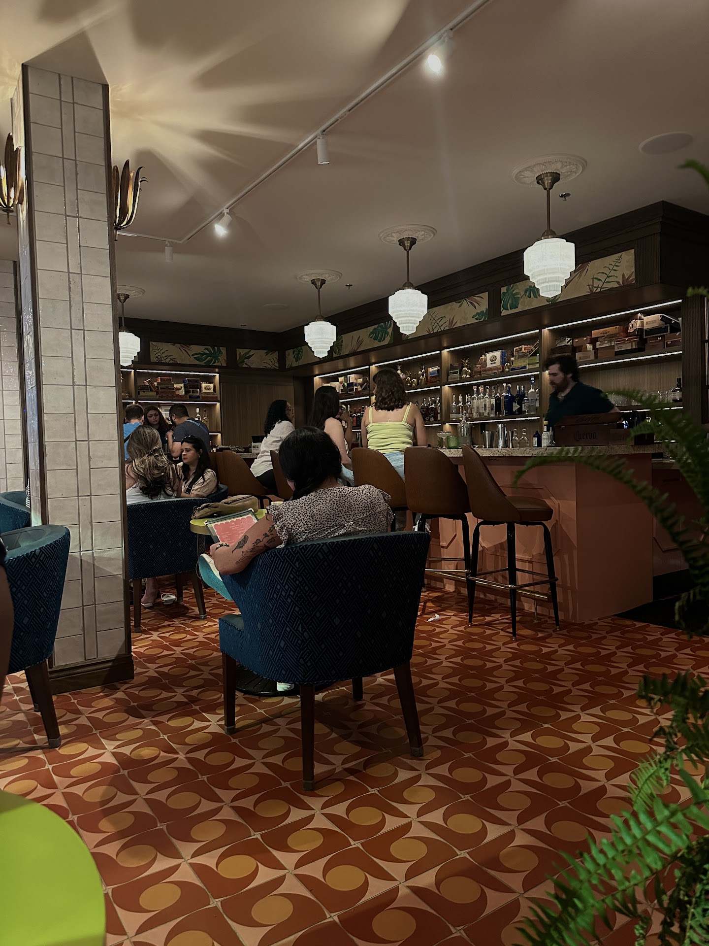 Read moreSo excited to visit this new eatery...It was a Friday early evening. Very crowded, no seating available...Not a restaurant size spot, more like a cafe. Sat at the bar to wait for our table. Outdoor seating is available but the tables are metal, they are dusty and there are no umbrellas or awning. Archer drink not available.(It's Friday evening) Junglebird did not have any guava taste and it was 80% ice...Espresso martini was perfection! Fufu appetizer dip texture and flavor no good. Pre made chips were also no good. Beef empanadas were outstanding, loaded with flavorful filling, and fried to perfection. Chicharones I've tasted better from the supermarket. The Cubano sandwiches are very, very good. Will definitely return for one of those and the delicious yucca fries. By the way, fries do not come with the sandwich. Order tequila and was charged $56.00 for four Ocho Reposado shots, which is the cost of a bottle. And last but not at all least they do not have bottled water. Overall the atmosphere was great. The space is colorful. Service was good considering how busy it was. "John" did a great job.Tables are limited so wait time was...