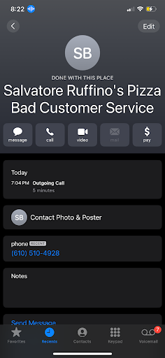 Read moreI love this place! I've ordered delivery from them several times and I'm never disappointed. On one occasion my order got messed up. But I was using an online app and ordering through that. So when I got I checked on the app, and as it turned out it was my mistake ( the online app was very confusing, so I had accidentally clicked on the wrong option on a steak sandwhich I ordered) upon realizing this , I called them and said I was ordering another sandwhich and would come pick it up. I didn't ask for a refund or for a free sandwich because I knew the mistake wasn't theirs but my own. Well they gave me the sandwich for free anyway! That was so nice of them, it wasn't there mistake, it was mine. I have a lot of respect for a business that will do that, even when not prompted. Lesson learned, either call the place yourself or be extra careful ordering on those online apps! Also hands down the best chicken parm from a pizza/Italian restaurant I've had. And they give you a HUGE portion, they definitely don't skimp on quality or quantity! I give this business 5...