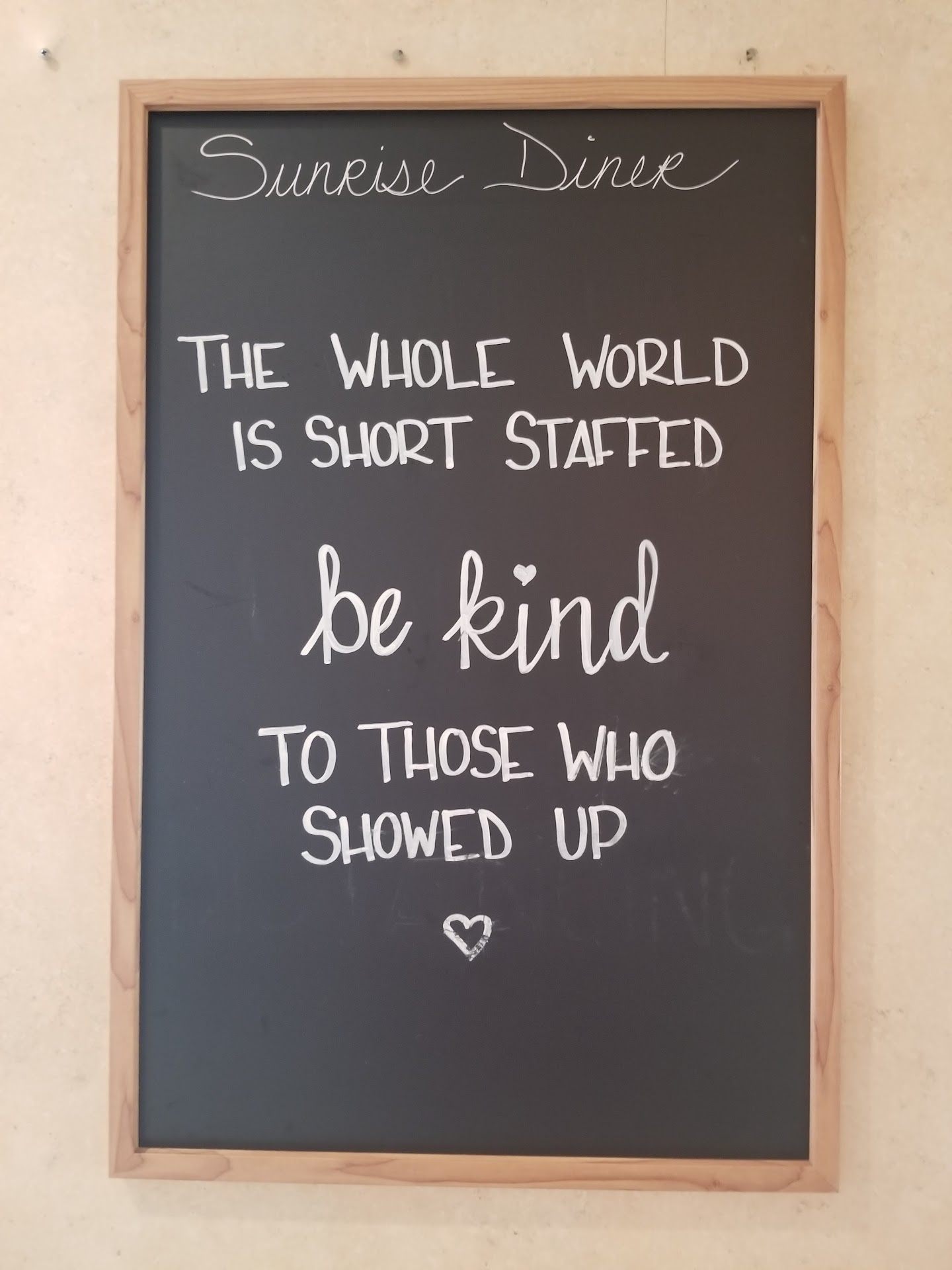 We are on the road a great deal, find ourselves eating out several times a week, trying new places as often as possible, returning to favorites when we can. How lovely to see the Sunrise still taking a corner spot on 4th Street.