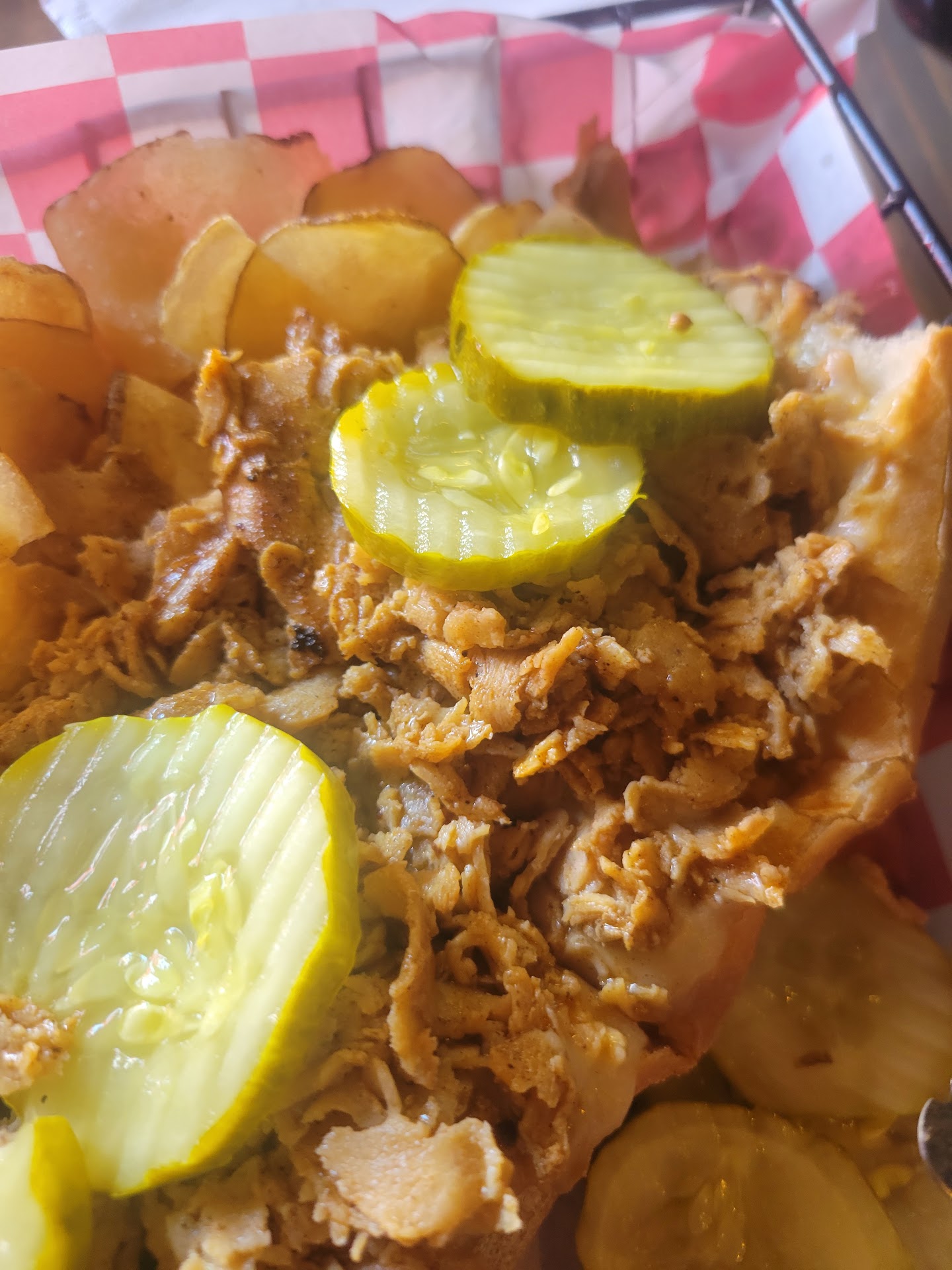 Read moreI've been going back and fourth on how to rate this place. It was Our first time here. I bugged my Husband for a few months to try it. I wanted to love it. We walked in and weren't sure what to do. Seat Ourselves? Wait for a host? After standing awkwardly for 30 seconds, we slid into a high top. It was dirty....as in wasn't wiped off. Quickly a server came to gave us menus and took our drink order. Someone else came to take our food order. We both got a chicken cheesesteak. We asked for them to be tossed in Buffalo sauce. We also ordered wings with blue cheese and ranch. Our cheesesteaks came out. Delivered by yet another guy. I asked where the wings were He was surprised. I told him 6 wings with ranch and blue cheese. A few mins later he brought them out ( no ranch, only blue cheese) it was bad timing because we were halfway into our cheesesteak. So? Finish the sandwich and let wings get cold? Or put sandwich on hold to eat wings let sandwich get cold? The wings were NOT saucy. At all. Maybe the sauce soaked in by the time we got to them? And we werent sure if the cheesesteak meat was tossed in buffalo sauce? Couldnt tell. The food was served in a basket with a piece of wax paper which got weak and started to rip. enough complaining. The good stuff: the food was piping hot. It had a decent flavor. The bun held up well. And it was stuffed nicely. All 3 servers were nice. There was lots of stuff to look at. See my delema in ratings. I might try it again? But won't recommend it to friends and family...