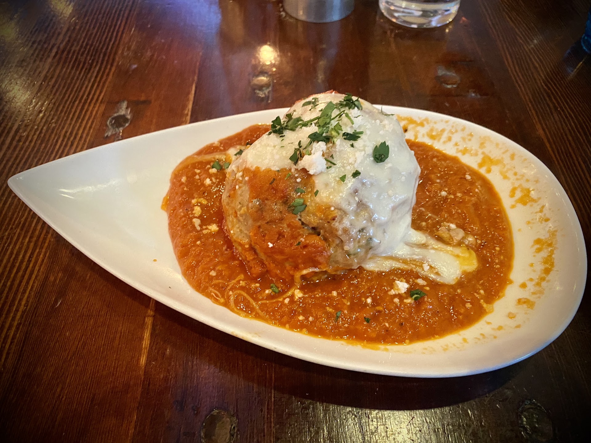 Cute looking place! The food was OK, nothing to write home about. The menu is short though. For apps we got the Mozzarella Planks. They were good! We also got French Onion Soup - it was lukewarm and nothing special. My mom didn’t even eat hers.
