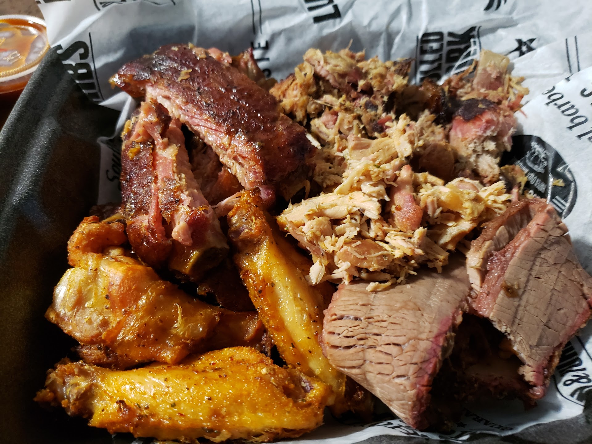 Read moreEasy, fast, and delicious. They have been training new staff there has been some issues (soggy fries, over salted brikets, & slow service). But overall they are pretty consistent and are good at accommodating my son's allergies. The pulled pork is always a good bet, as is the chicken and brisket. The specialty hot dogs should be avoided unless you like meh hotdogs with great toppings. They had fried okra as a special side at ine point and it was fantastic. The cornbread is more of a cupcake than cornbread but then you can use the cinnamon honey butter as frosting and have that be dessert. I have a location blocks from my house and we go there a good bit. Also tasty smoked wings, cheerwine soda, and 5 different types of sauce. No Alabama white but that doesn't bother me because I don't like that style. Oh and 2 types of slaw (mayo...