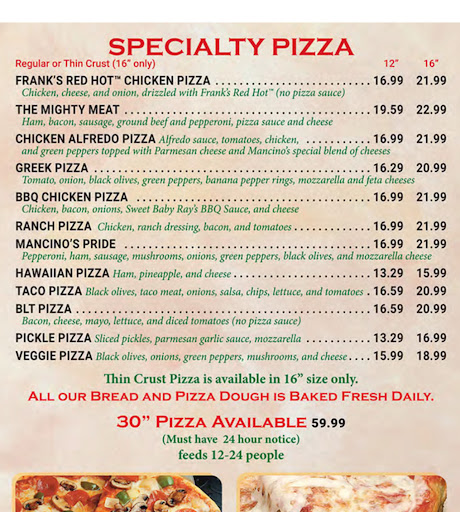 As a frequent visitor to Mancino's in Alma, I feel compelled to share the delightful experiences I've had at this local favorite. From the first bite, it's clear why their pizza stands out - it's simply great. The crust is cooked to perfection, the toppings are always fresh, and each slice is a testament to quality.