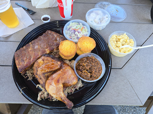 Read moreAfter realizing this place had a separate review for itself and seeing some of the reviews wow. Did not think it was that bad. Potato salad amazing, pulled pork amazing, ribs almost amazing and brisket wet and salty but went well with the cornbread muffin, which was some of the best cornbread we've had. Lil pieces of corn and jalapeno throughout. Mac and cheese was, a bit dry and, yeah it's hard for them to keep it moist I suppose. Prices weren't that bad I don't think, $22 for three meats, cornbread and two sides. Fed two people so $11 a piece. One of the amazing things about sitting there and eating is that the whole time you have the most wonderful aromatherapy coming from the smoker constantly. Amazing to sit and wallow in it while your eating, the most beautiful smoked meat smells. Was a beautiful day and all the staff seemed very friendly with smiles...