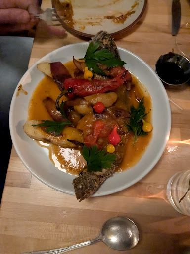We had a fantastic meal for 5 at the Alna Store Saturday evening. Drinks, food, and service were all spectacular, and well worth the 50 minute drive from Phippsburg. Started off with great craft cocktails, including an unusual Peach Absinth Frappe and a perfectly executed gin and tonic. Apps were also fantastic, my favorite was the sour dough and pickle plate with a delicious mustard butter and added house-made caraway fennel chili crisp. Main courses were excellent, I had the best fresh fish plate ever, a whole trout expertly deboned with crisp skin and an amazing sauce with Italian peppers and fingerling potatoes. Scallops, braised pork, and chicken dishes all got rave reviews. Deserts were also outstanding, including delicious sorbet, an awesome crab apple custard with an olive oil shortbread crust, a flourless chocolate cake that was somehow both decadent and light, and an espresso martini that vanished before I could get a taste. Service was friendly and efficient, a great team effort with care taken to deliver the right plates to each diner and help us select the perfect dishes from the unusual choices on the current menu. Only downside (sarcasm here) for me was the store itself, which occupied part of our group for an extra 15 minutes after the meal and added extra $'s to the evening, but that was well worth it the next morning, as we tore into a sourdough baguette that was excellent even though not fresh out of the oven, complimented with some earthquake cheese and birch syrup. Looking at the online menu I thought this might be a restaurant trying to hard to be different to justify high prices, but that concern was 100% unfounded, and I cant wait to return. Definitely worth the trip and the expense if you are anywhere in the...