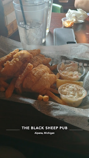 Read moreWhen I visit Alpena, I try to hit local places. I decided to visit The Black Sheep. I had a craving for potato skins but didn't want to hit a burger joint and this place has them. There doesn't appear to any parking except for on the street. There is a parking lot in the back but I don't think it's for here. I saw signs saying unauthorized vehicles would be towed, so I parked on the street. Upon my arrival, I stood in the doorway for a few minutes before being told that I could sit anywhere. There was no sign saying to sit or wait. Once I did sit, it took a about 5 minutes for him (the same guy who told me to sit anywhere) to come to my table but it felt longer and I contemplated leaving. In his defense, he was the only one serving tables and it was busy. He showed up and took my drink order and quickly came back with my drink and then took my food order. I ordered an appetizer at 6:05, along with my entree. As of 6:32, I still had yet to receive either item. At that time, he came to the table and told me that, for some reason, my order didn't make it to the kitchen. Five minutes later, my potato skins came out. 15 minutes later, my entree came out. I ordered the Shepherd's Pie. It was a bit smaller than I expected but it was pretty good. He never came back to check on me but, again, he was really swamped. I feel like I could have left without paying and they wouldn't have noticed. I was going to give this place 3 stars but given that he had ZERO help and he discounted my meal, I gave it 4 stars. I might try it again when I'm back in town. Sorry about the potato skin photo. I was so hungry, I forgot to...