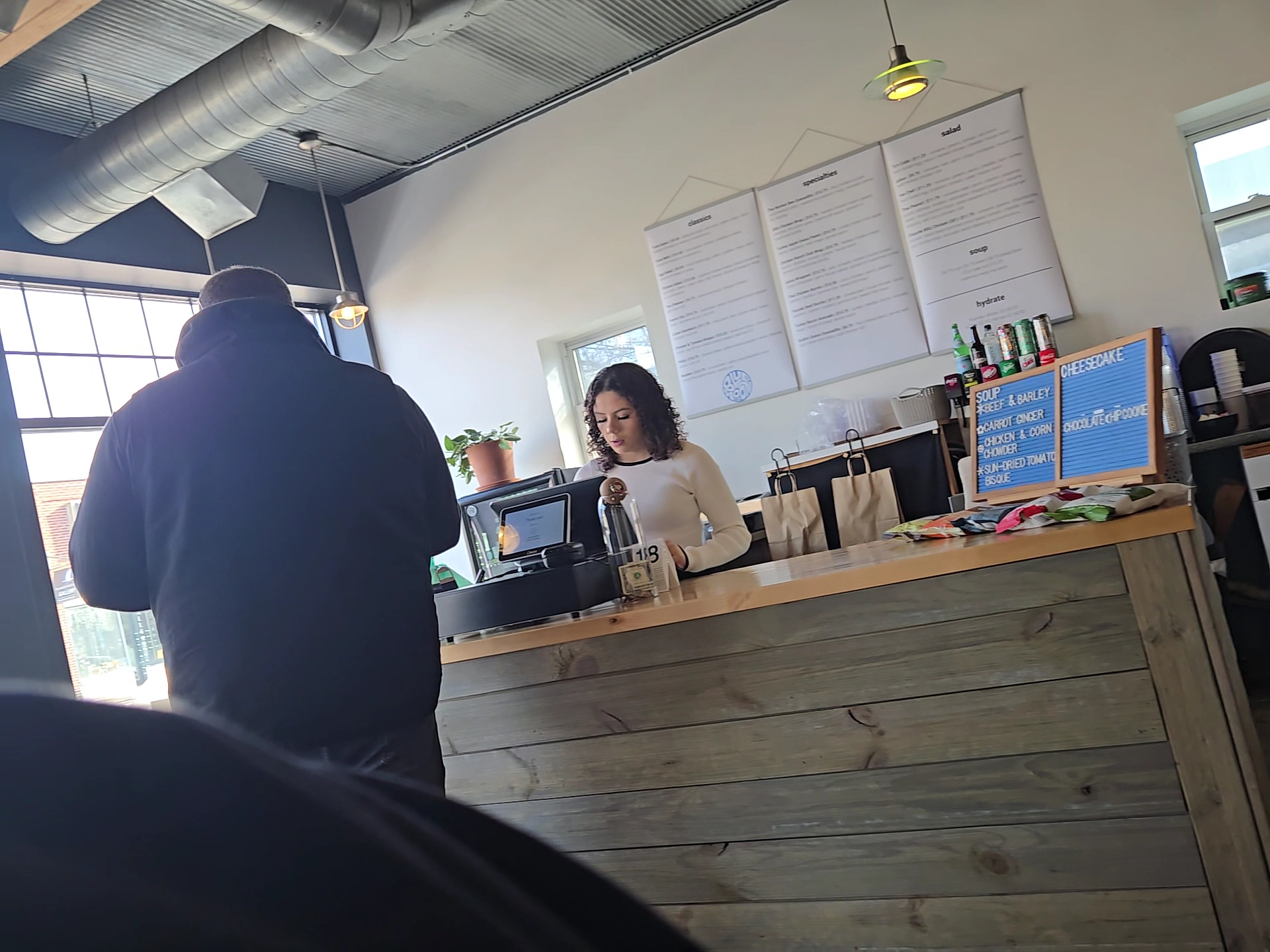 Had to review because we were so pleasantly surprised and delighted! We had a group of 7 including a vegetarian, 2 picky teens and a four year old. We LOVED everything about our lunch. The cafe is cute and spotlessly clean and seems to be a popular lunch spot room but staff offered to rearrange tables to seat us. The menu has some standard sandwiches and some more inventive fusion items and every one of the 6 mains (two different burritos, a Philly, two turkey bacon avocados on different breads, a Cheeser with soup and an Asian salad) and one dessert we ordered were fresh, carefully prepared and presented, and delicious. The tomato bisque was as good as I’ve ever had and the delightful sesame miso dressing on my wonderful Asian salad (gorgeous, fresh kale, lettuces, shaved almonds, carrots, scallions, yum!!) had to have been house made. Meals include sides and the chip selection included my teen’s favorite Michigan Cherry barbecue variety, a nice bonus. If we were staying in town longer I’d go back and our local-ish hosts plan to...