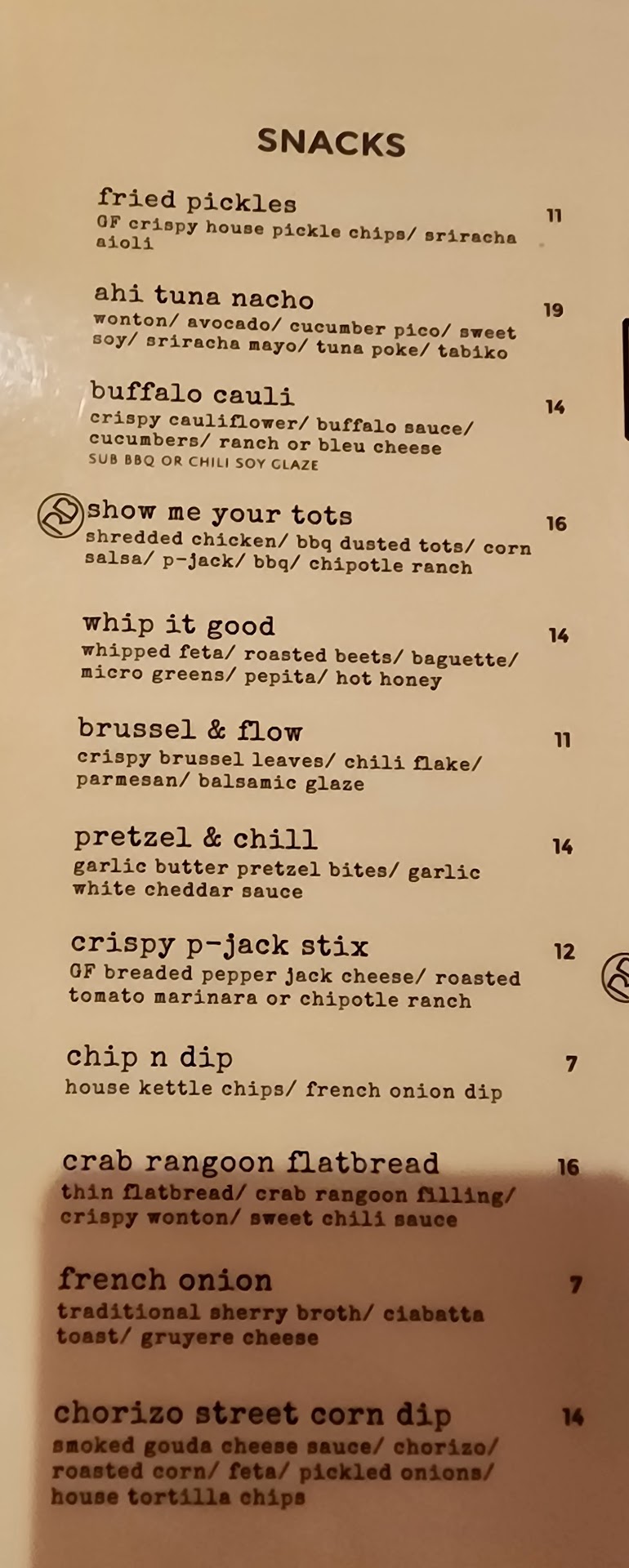 Read moreWe came here specifically for the French Dip, as I was craving one. There was an hour and 15 minute wait for a table but we were able to sit at the bar after only about 5 minutes. The atmosphere is very inviting. We ordered the Ahi Nachos and Caprese Salad. We waited at least 30 minutes for these to be served, and while I understand they were busy, these were appetizers that needed no cook time. Both were very delicious, however, so we soon forgot the wait. We ordered the fish & chips and the French Dip with tots. The homemade tots were really good, but the size of the French Dip was very underwhelming. It was average to say the least. The fish & chips were exceptional, aside from getting a plate full of fries and three smallish pieces of fish. For the price we were disappointed with the portions of the main entrees. Our drinks were good but when we tried telling the bar tender the food was delicious but lackluster on the amount,...