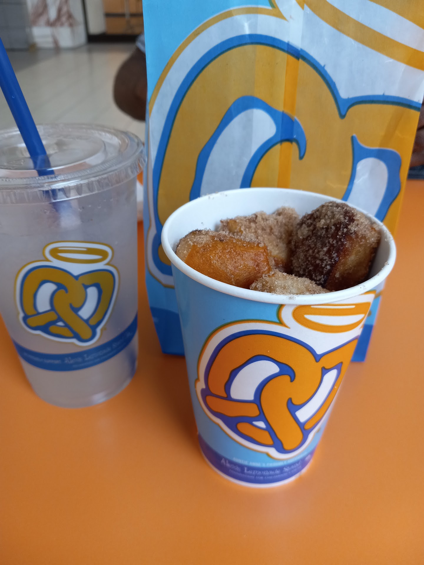 Read moreKeep your eye on the floor. Our last time there (which may literally be our LAST TIME there), we spotted no less than 3 cockroaches as we stood on line. Not sure why we still place an order but we did, only to be ripped off by their OREO topped nuggets. The bowl was filled with black paper (to hide that they were ripping us off) and we paid $8 to get only 8 pretzel nuggets. The employees never seem to have any energy and always act like they are working under duress. With several snack food options in the mall, Auntie Anne's needs to be boycotted so that they are...