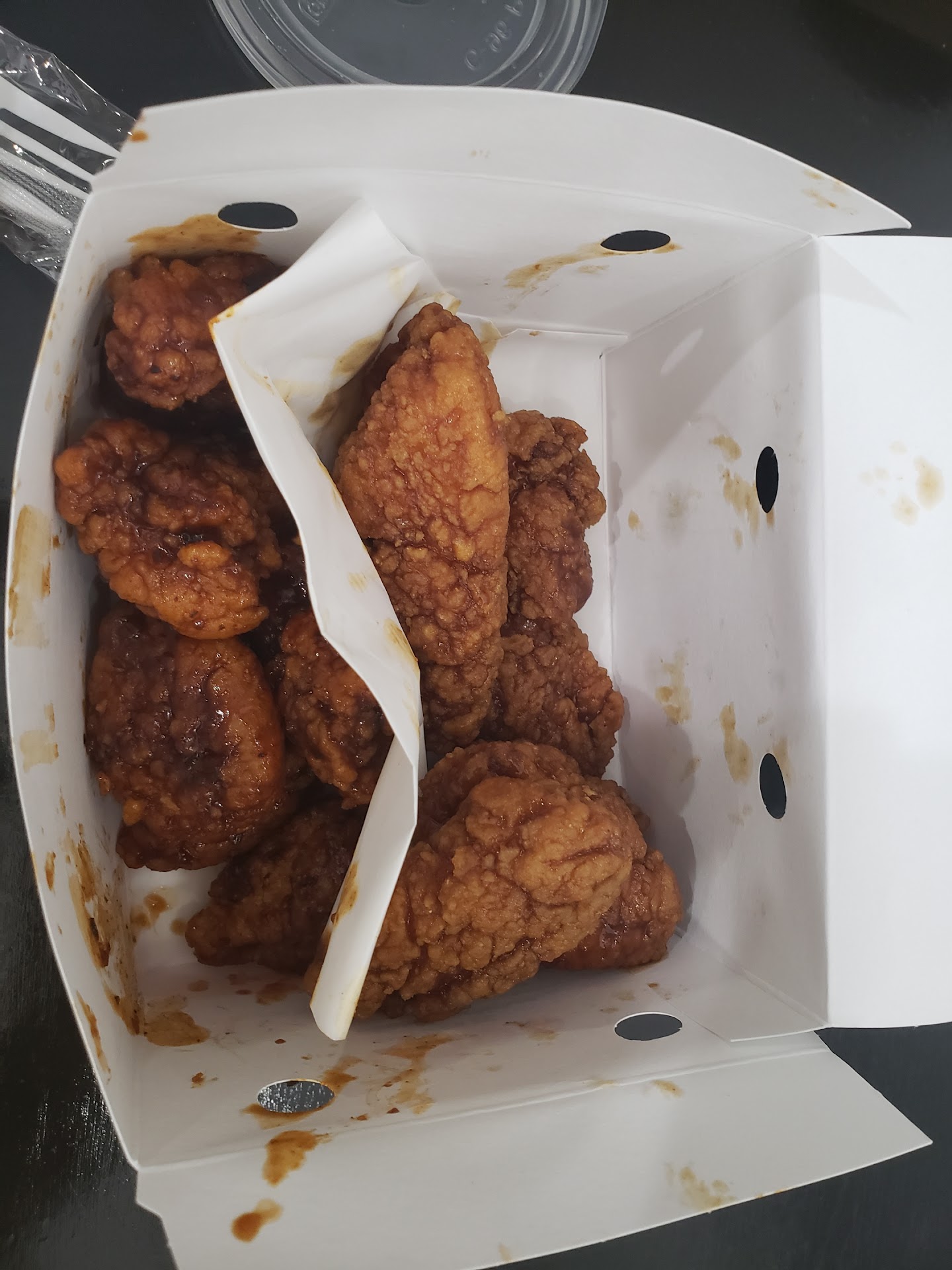 Read moreI was excited that they opened another location but I was disappointed with the chicken wings. We only ordered the half soy garlic and half plain wings to go. PROS: the size of the wings were huge, crispy, and hot. CONS: the chicken wings itself doesn't have any seasoning. At least season the wings itself. For the soy garlic, there wasn't any strong garlic or soy sauce taste. They coated the wings too lightly. I was worried that they would be too salty according to other reviewers. Overall, I hope they improve the salt vs not enough flavor with their wings. I don't feel like driving out to Fayetteville for Bonchon wings. If they want to compete with the other korean chicken place down the street, they need to improve their flavors.