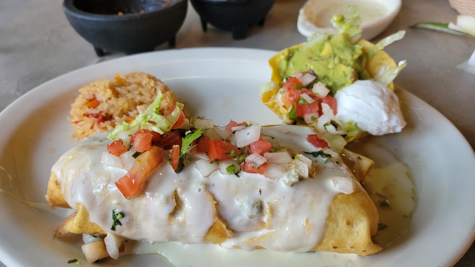 Read moreCute little restaurant with some fun decor. Came in on a Saturday evening around 8pm with a friend and we had about a 30 minute wait. I ordered the Wet Burrito with chicken and I loved it. My friend got the chicken fundito and said it was very good as well. She drank a house Margarita (said it was good). I ordered the Margarita Flight (comes with 4 small Margarita varieties that are pre-chosen by the bar. It’s $30 for this flight. I asked for mine to be on-the-rocks. The waiter accidentally brought out the frozen flight. I reminded him that I ordered on the rocks. He immediately took it back, and brought out a new one in a few minutes. I’m not sure if this has anything to do with the quality thereafter (was the bartender annoyed?) because they didn’t taste alcoholic to me at all. The drinks were overly sweet and hard to drink due to the syrup or sugar. I was worried that the entire flight would be too much for me to handle, but ironically enough, I made myself try and finish each drink and never even felt a buzz. For $30, I was a bit disappointed. Although, I didn’t take the tequila shot and am wondering if I was supposed to pour it into the drinks myself?. Either way, it was cute and fun to try. I enjoyed the overall experience and would probably give this restaurant 5 stars, if it wasn’t for the disappointing Margaritas (which are the...