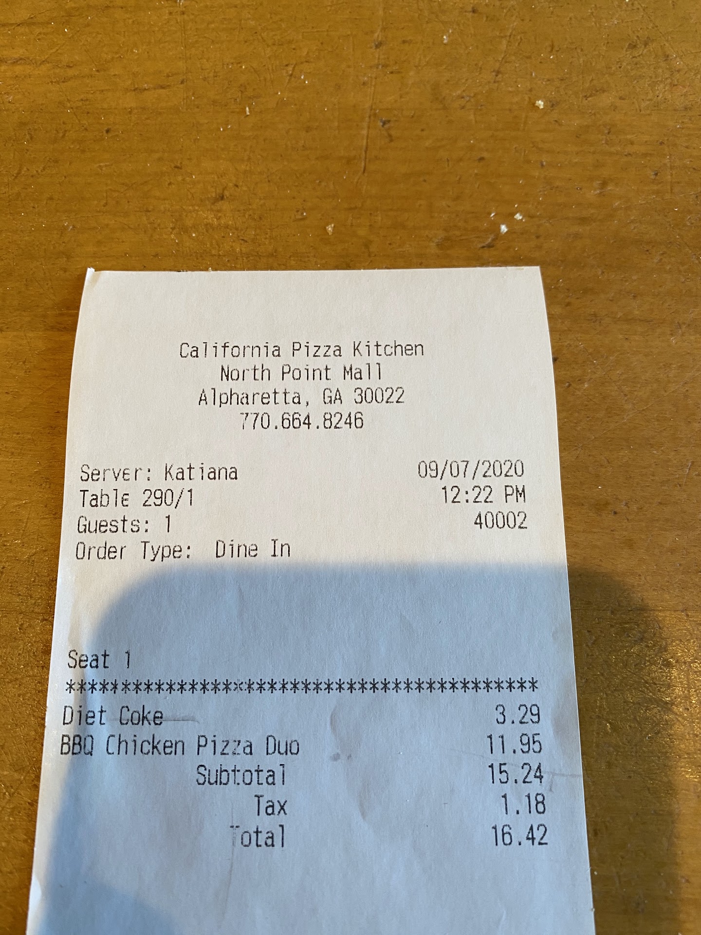 Read moreThis location is absolutely horrible!! The service is terrible, and the management is ineffective. We arrived at 7:20pm on a Sunday night. We were seated at 7:40. It was not busy by any means. Maybe half of the tables occupied. No one came to our table for 30 minutes! Finally we waved down a gentleman who was so nice. He took our drink and appetizer order. We could see him tell our waitress. She argued with him visibly and continued to ignore us. About 15 min later I got her attention while another table was complaining about her to the manager. She acted oblivious. She did take our order and brought over the appetizer and drinks. 45 min after sitting down!!! It would be another 30 min before the food came. She did not refill a water or do anything! She waited on her other tables! She refilled their drinks and attended their tables. We got nothing. Our food finally came after 9pm. It was ok. I had to ask another server for silverware. I did get the attention of the manager and explained how horrible this experience was. He could see that no one had anything to drink with their meal. He just made excuses about how understaffed they were. But other tables were getting good service! He promised to look at our bill and give us vouchers to come back. He took 20 off our bill. It was less than 20% off. We did not get any of the vouchers that were promised. Our bill was still 100 for 5 people. We asked for the table to be transferred to the waiter who helped us far more than our waitress so he would get the tip. I was a waitress for 10+ years and know the business. I tip very well and never complain. But this was horrible! This was the worst service I have ever gotten! When he transferred our table to the waiter that did try to help us you could see the waitress throwing a whole fit with her disrespectful attitude! My teenager was appalled by the scene! That is saying a lot! We will never return to this CPK again. Our experience was so terrible it honestly ruined me to the...