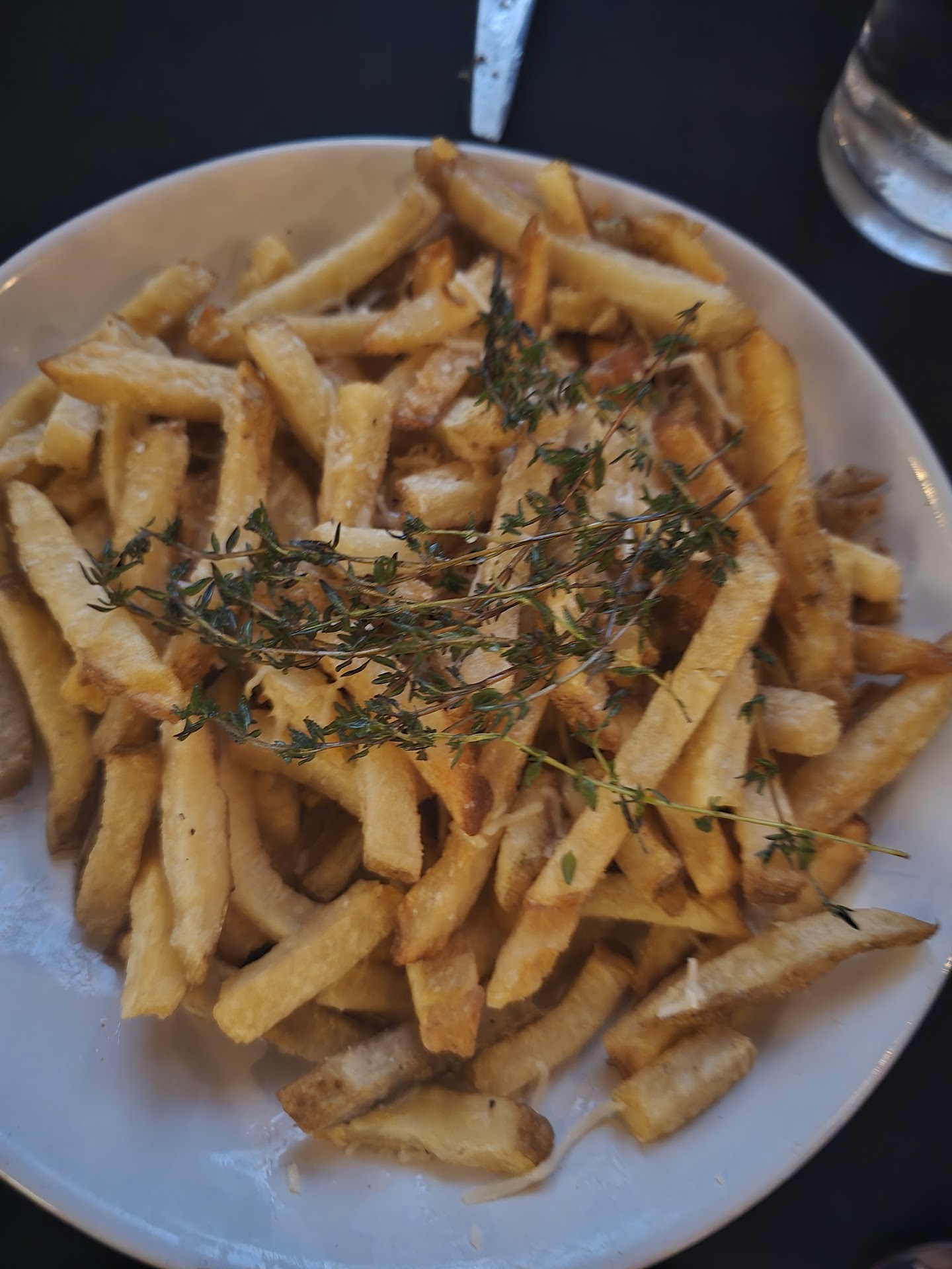Food: Apps - - We ordered the Short Rib Empanadas, Brussel Sprouts, Burrata, French Fries and Fried Okra. I'm not a fan of okra, but this was pretty good. The Burrata most didn't really like. The Fries weren't really anything crazy. The Empanadas and the Brussel Sprouts were very good. If I had to choose one, I'd go with the Empanadas.