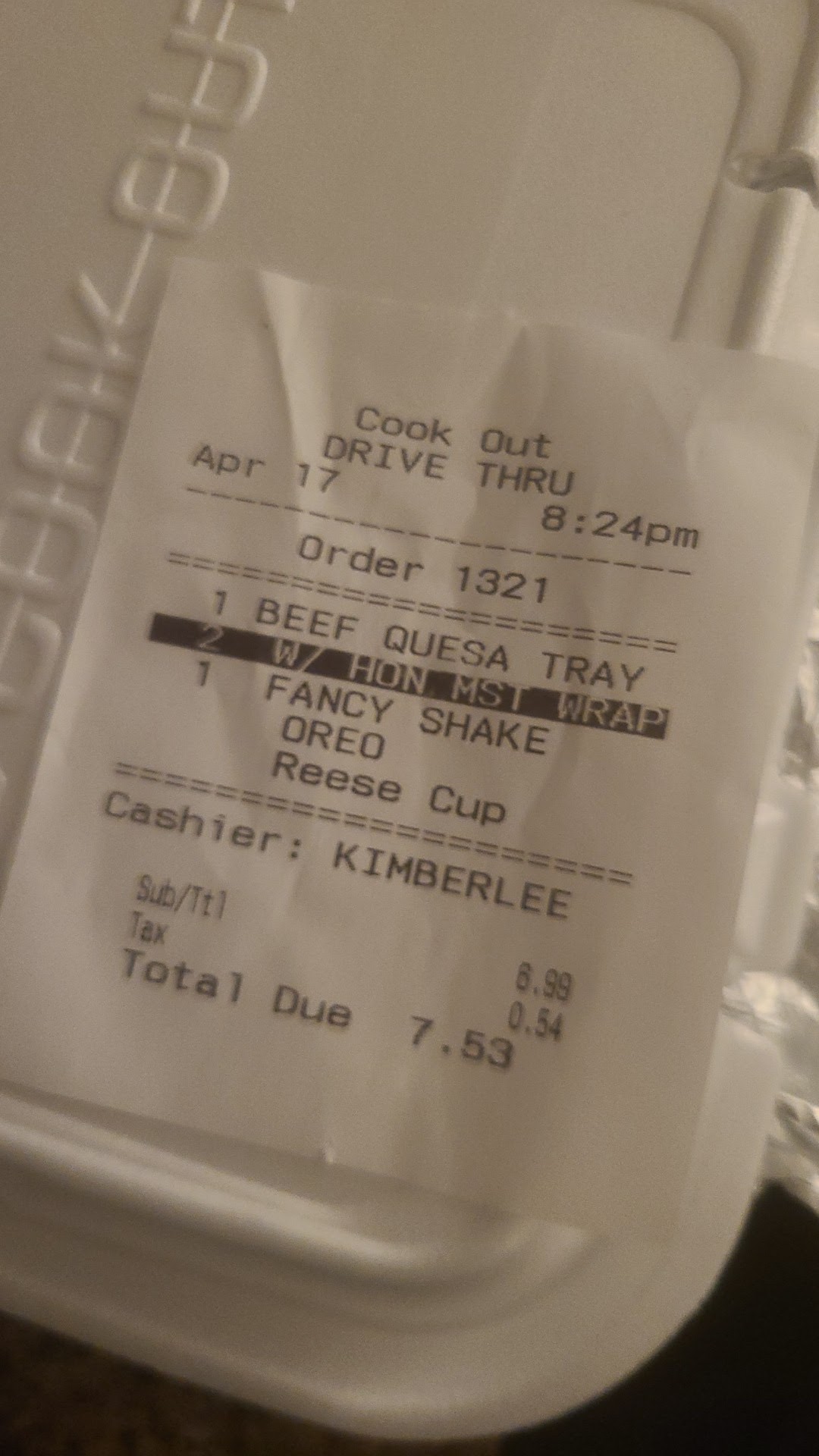 I know that these are high school kids a lot of times, so if they have an issue with working past their bed time and it makes them cranky/unpleasant, Cook Out should consider only having adults work...