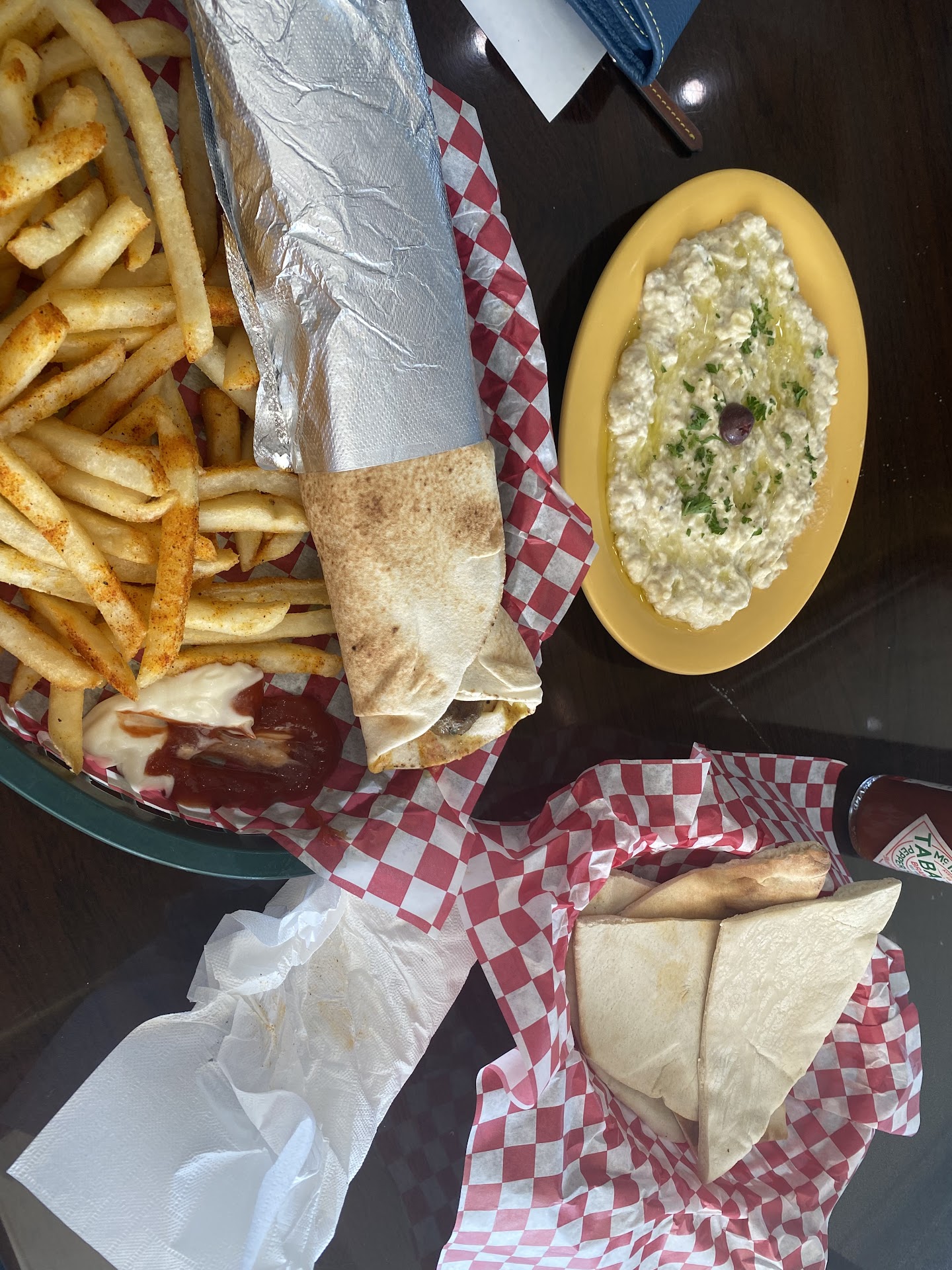 Read moreThe food was OK. Nothing special. The serving sizes are not as generous as people make it seem, at least for the price. I’d say the sizes are average. The only thing they were generous on was the meat (lamb). My gyro was missing onions and there was barely any lettuce and tomato. It could also use more tzatziki sauce. I got a small little cup size of tzatziki on the side, and it still wasn’t enough. This restaurant isn’t really tzatziki friendly. You can’t ask for a generous amount of it on the side. If you want a lot of tzatziki, then don’t go to this restaurant. Also, the tzatziki was not good. I’ve had better. The hummus was average. Not that great. The pita was nice and dense, but for the price paid for the hummus dip, there definitely wasn’t enough Pita. For the money spent at this restaurant, I wouldn’t come back here again. This place wasn’t worth the hype.