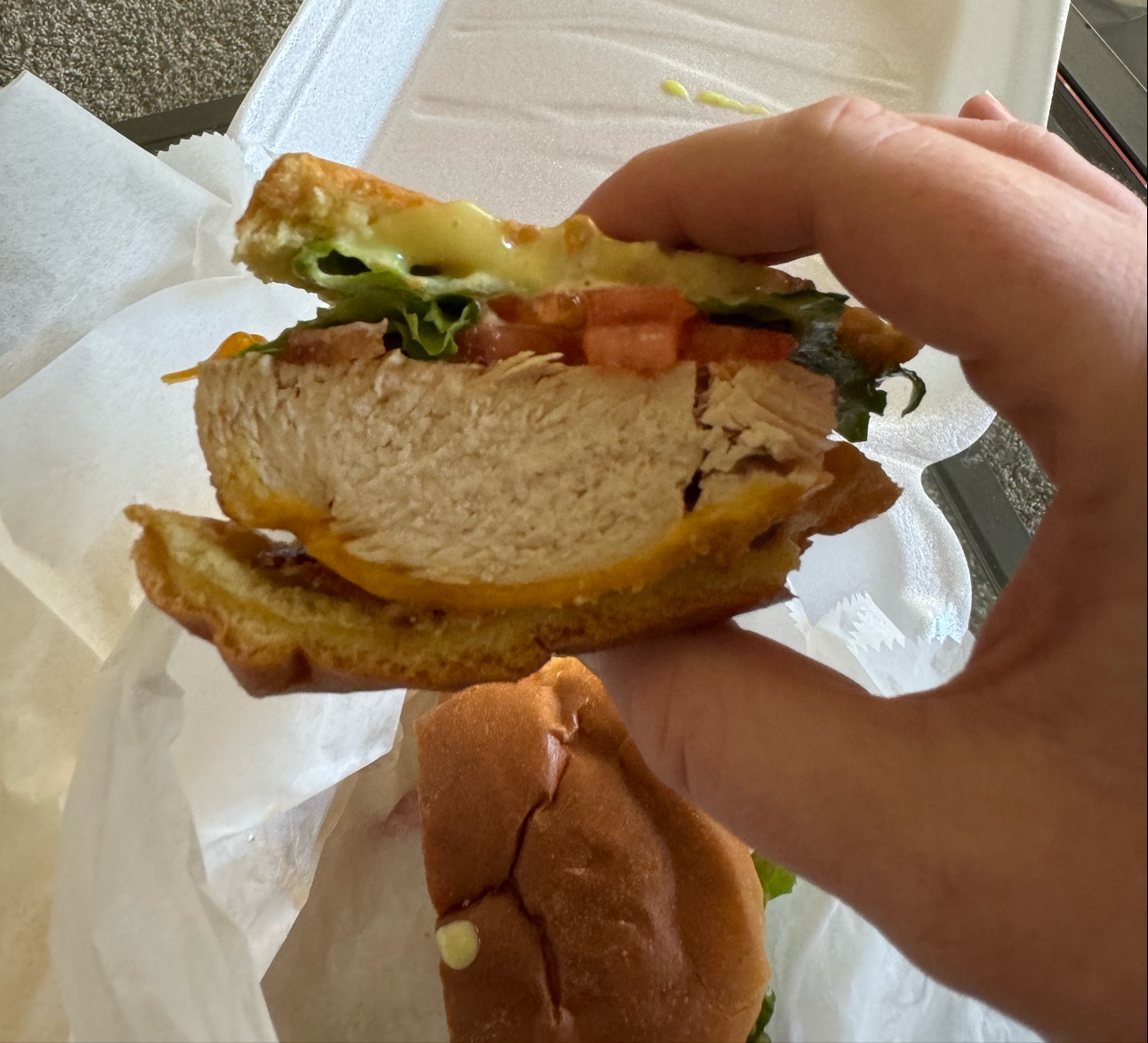 HORRIBLE food, really the worst meal Iâve had in a long time. It pains me to write a review like this because itâs not great for a local business, but man was my sandwich gross! I ordered the Grilled Chicken Club Sandwich and it was this HUGE chicken breast. I know that normally would sound good (you want a chicken sandwich to contain a lot of chicken right?!), but the chicken breast was clearly very poor quality, with that âgameyâ taste you get from bad quality chicken. I peeled the cheese off and saw ZERO grill marks or color, which makes me believe the chicken was not grilled but rather boiled, which it tasted like. It was essentially all boiled chicken with a touch of the other toppings.